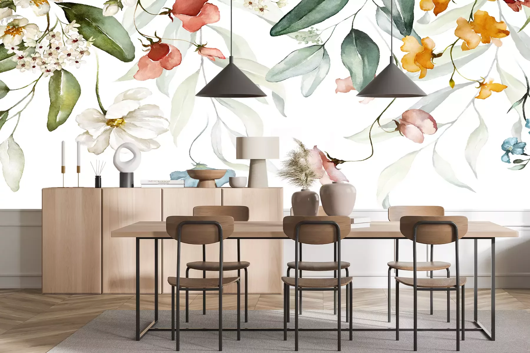 Das Material Premium+ besteht aus einer strukturierten Vinyl-Oberschicht und einem Trägermaterial (Vlies) mit einer Grammatur von 255 g/m², das kleine Unebenheiten der Wand zuverlässig kaschiert. Die feine Sandstruktur verleiht der Oberfläche eine luxuriöse Haptik, während das halbmatte Finish die Tiefe der Farben betont. Das Material ist dampfdurchlässig – so kann diese Fototapete auch in Küchen und Badezimmern eingesetzt werden. Die maximale Breite einer Tapetenbahn beträgt 100 cm. Bei größeren Abmessungen besteht die Fototapete aus mehreren gleich großen Bahnen. Der Kleber wird direkt auf die Wand aufgetragen, und die Fototapete wird auf Stoß angebracht, was für einen ästhetischen Effekt ohne sichtbare Fugen sorgt. Die Oberfläche ist pflegeleicht und kann bei Bedarf sanft mit einem feuchten Tuch abgewischt werden.