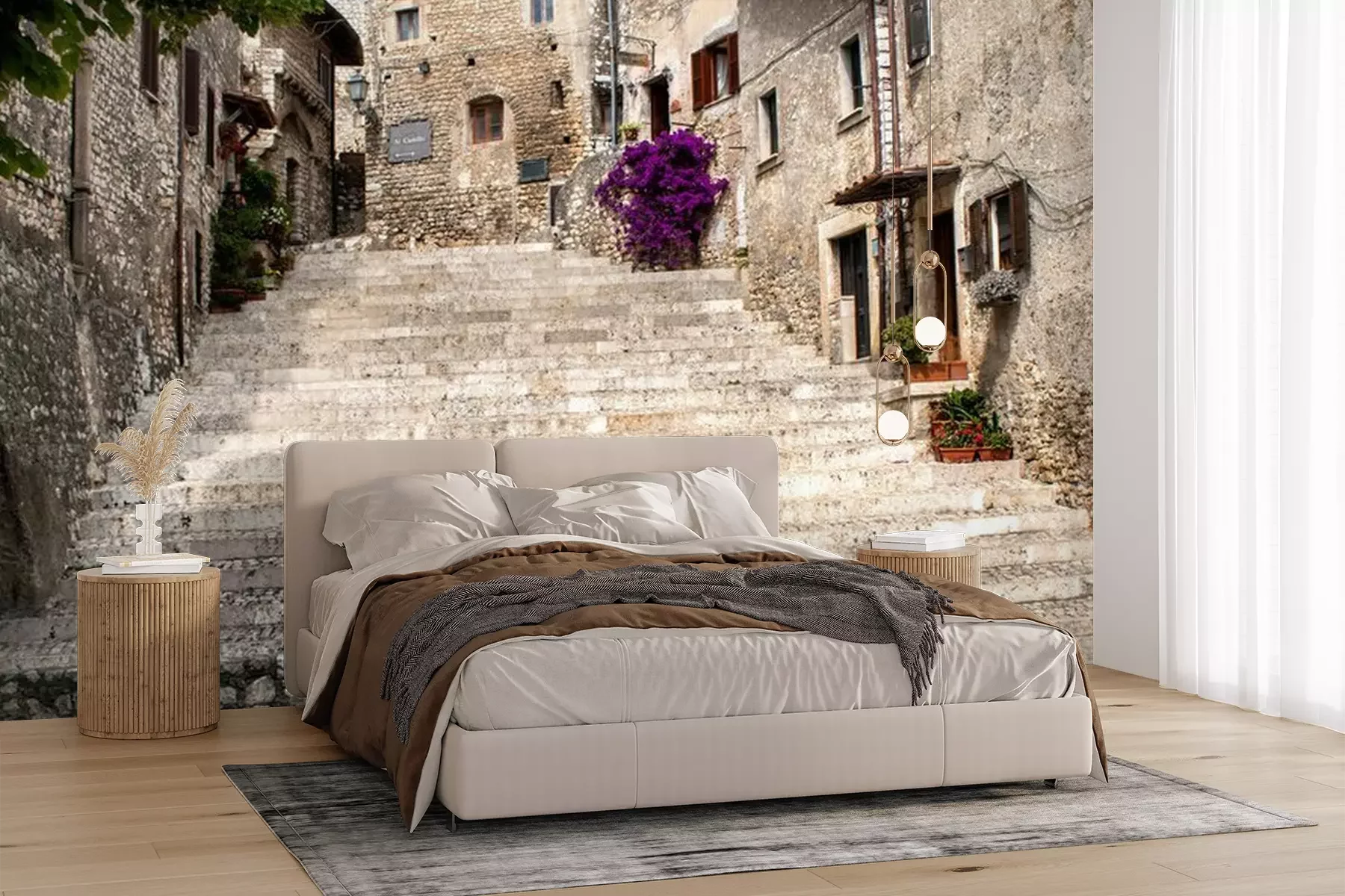 Das Material Premium+ besteht aus einer strukturierten Vinyl-Oberschicht und einem Trägermaterial (Vlies) mit einer Grammatur von 255 g/m², das kleine Unebenheiten der Wand zuverlässig kaschiert. Die feine Sandstruktur verleiht der Oberfläche eine luxuriöse Haptik, während das halbmatte Finish die Tiefe der Farben betont. Das Material ist dampfdurchlässig – so kann diese Fototapete auch in Küchen und Badezimmern eingesetzt werden. Die maximale Breite einer Tapetenbahn beträgt 100 cm. Bei größeren Abmessungen besteht die Fototapete aus mehreren gleich großen Bahnen. Der Kleber wird direkt auf die Wand aufgetragen, und die Fototapete wird auf Stoß angebracht, was für einen ästhetischen Effekt ohne sichtbare Fugen sorgt. Die Oberfläche ist pflegeleicht und kann bei Bedarf sanft mit einem feuchten Tuch abgewischt werden.