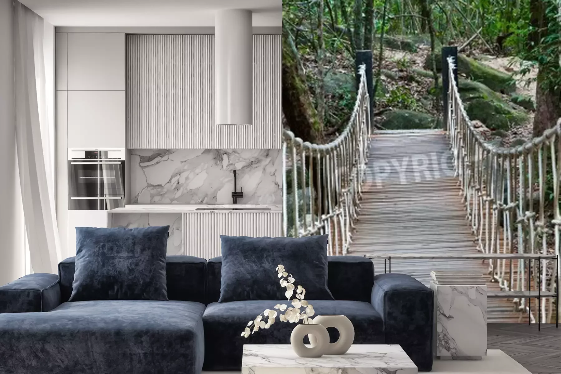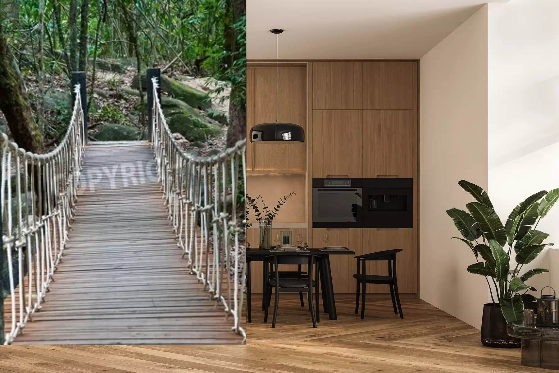 Fototapete Brücke inmitten vom Gebüsch