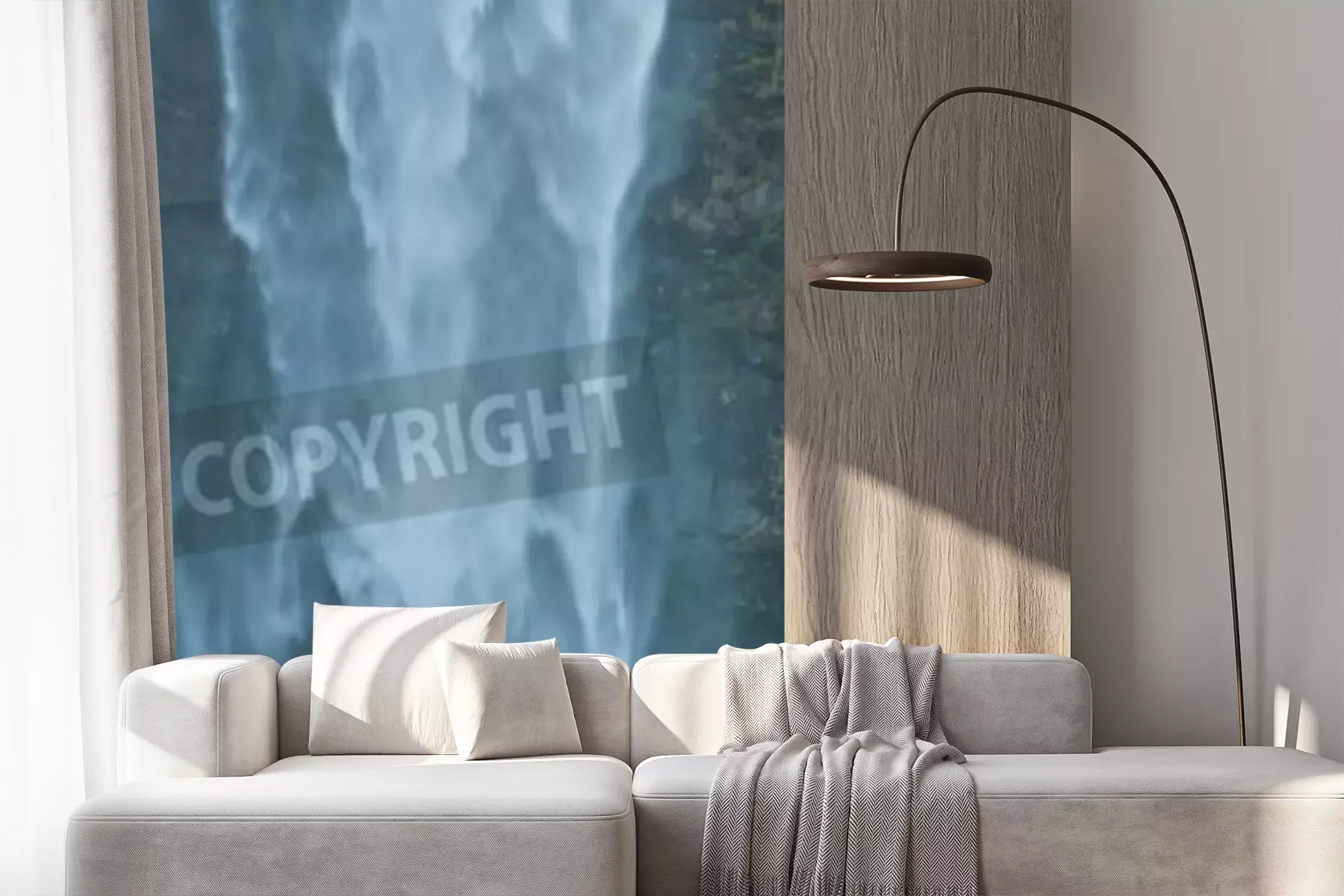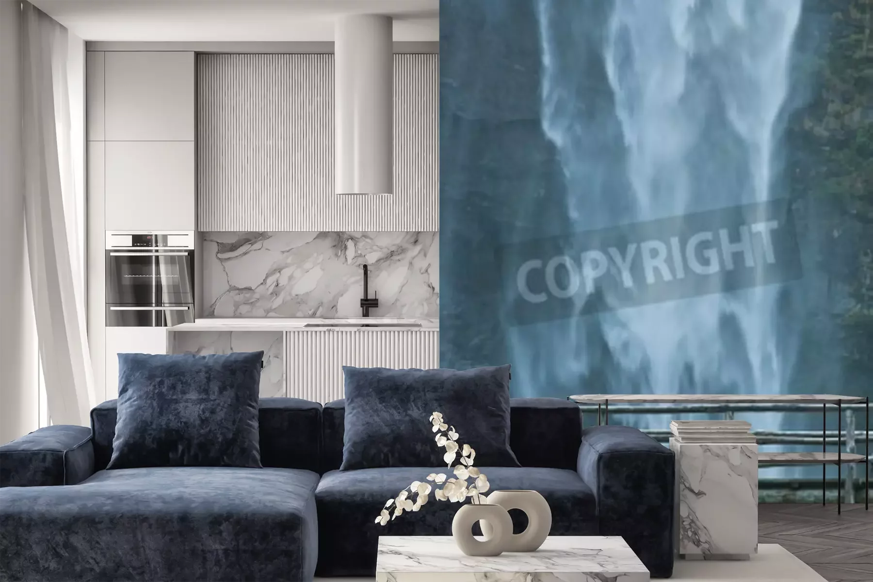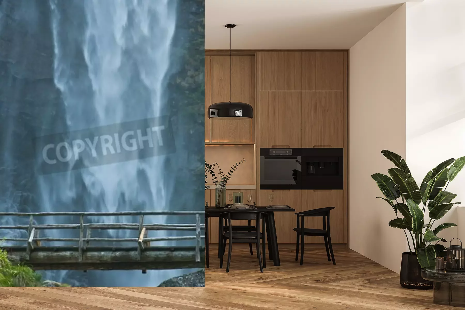 Fototapete Brücke mit Wasserfall im Hintergrund