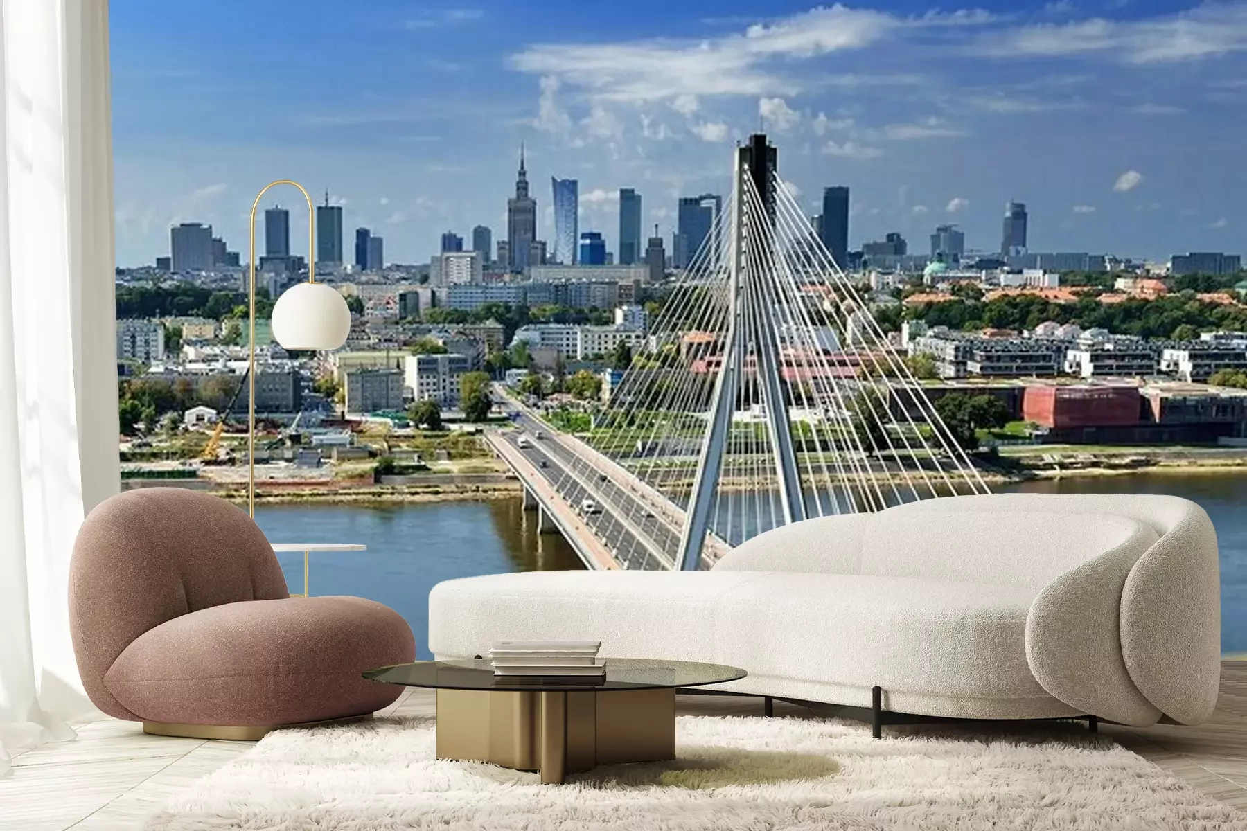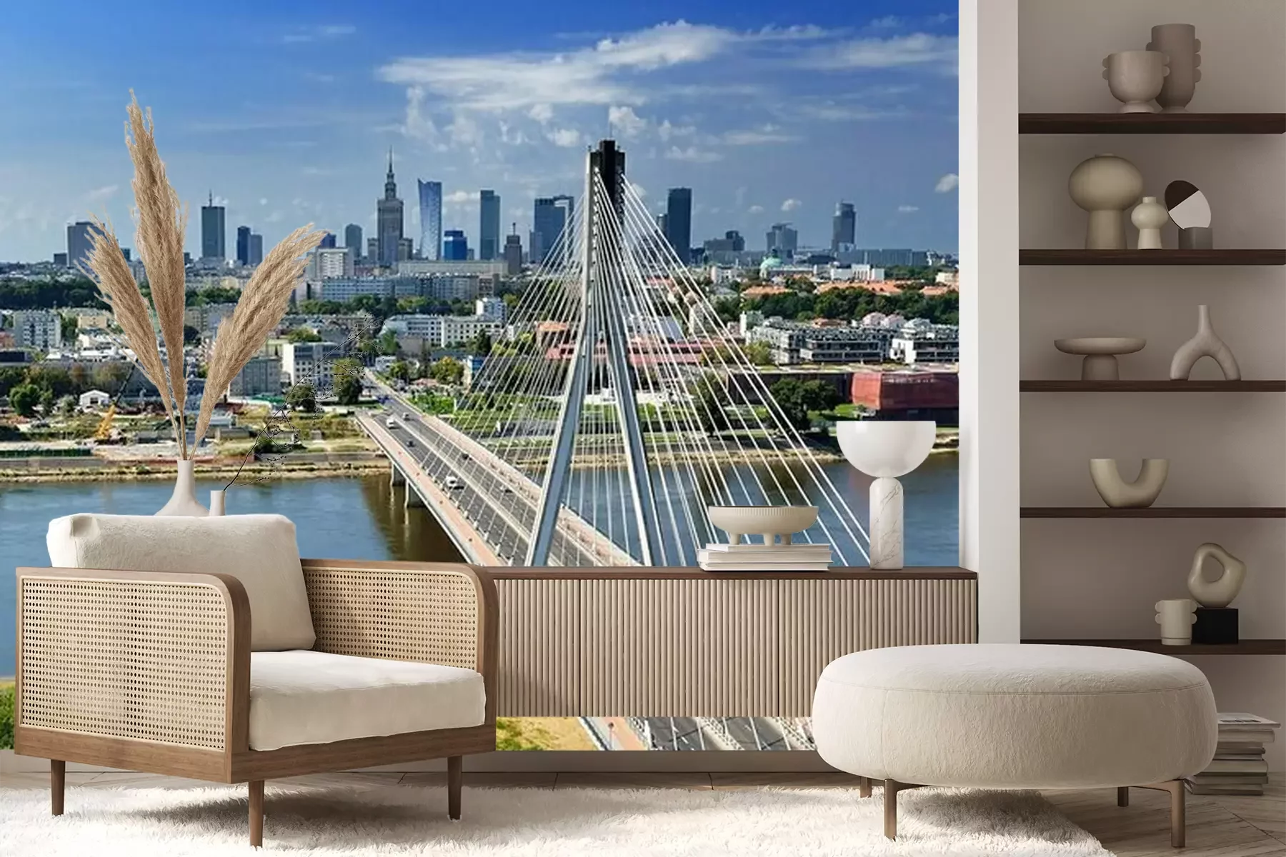 Fototapete Brücke Stadt am sonnigen Tag