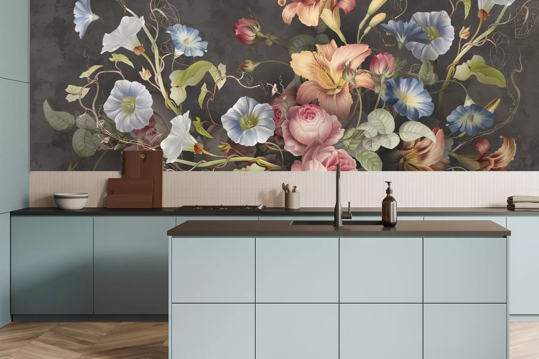 Das Material Premium+ besteht aus einer strukturierten Vinyl-Oberschicht und einem Trägermaterial (Vlies) mit einer Grammatur von 255 g/m², das kleine Unebenheiten der Wand zuverlässig kaschiert. Die feine Sandstruktur verleiht der Oberfläche eine luxuriöse Haptik, während das halbmatte Finish die Tiefe der Farben betont. Das Material ist dampfdurchlässig – so kann diese Fototapete auch in Küchen und Badezimmern eingesetzt werden. Die maximale Breite einer Tapetenbahn beträgt 100 cm. Bei größeren Abmessungen besteht die Fototapete aus mehreren gleich großen Bahnen. Der Kleber wird direkt auf die Wand aufgetragen, und die Fototapete wird auf Stoß angebracht, was für einen ästhetischen Effekt ohne sichtbare Fugen sorgt. Die Oberfläche ist pflegeleicht und kann bei Bedarf sanft mit einem feuchten Tuch abgewischt werden.