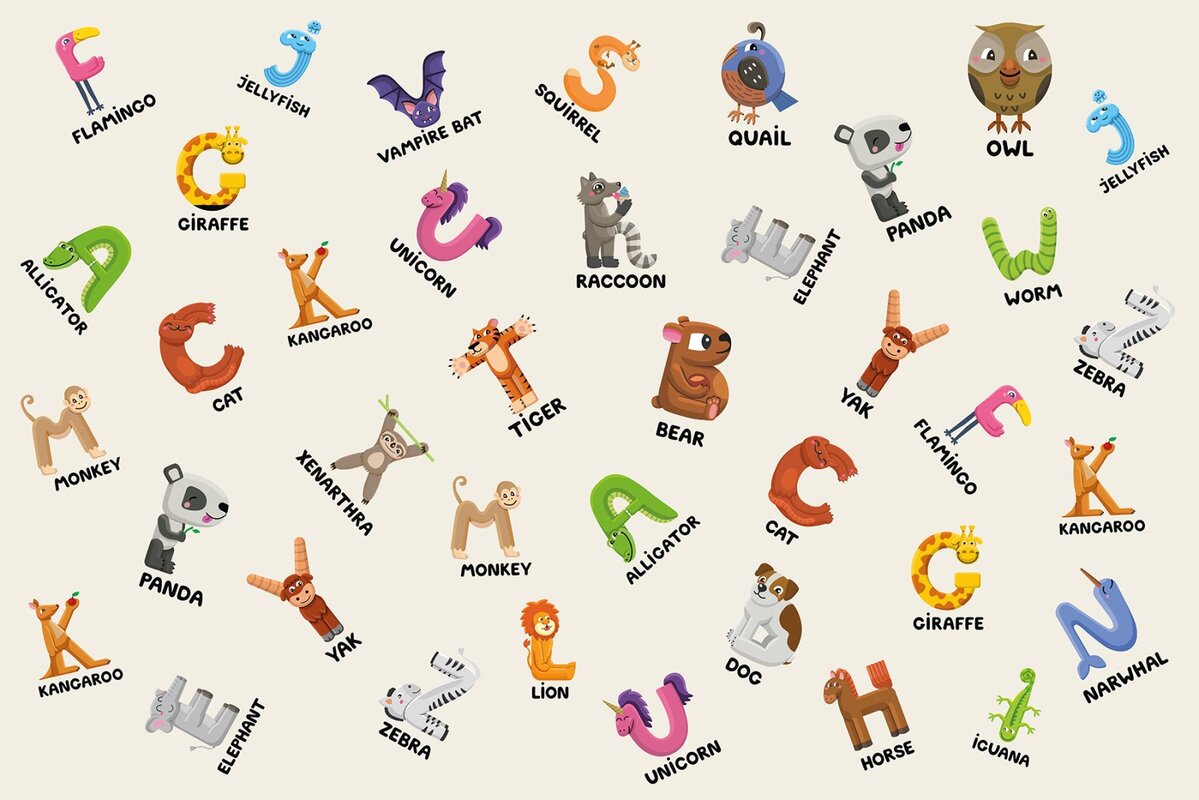 Fototapete: Bunte Buchstaben des Alphabets in Tierform für Kinder
