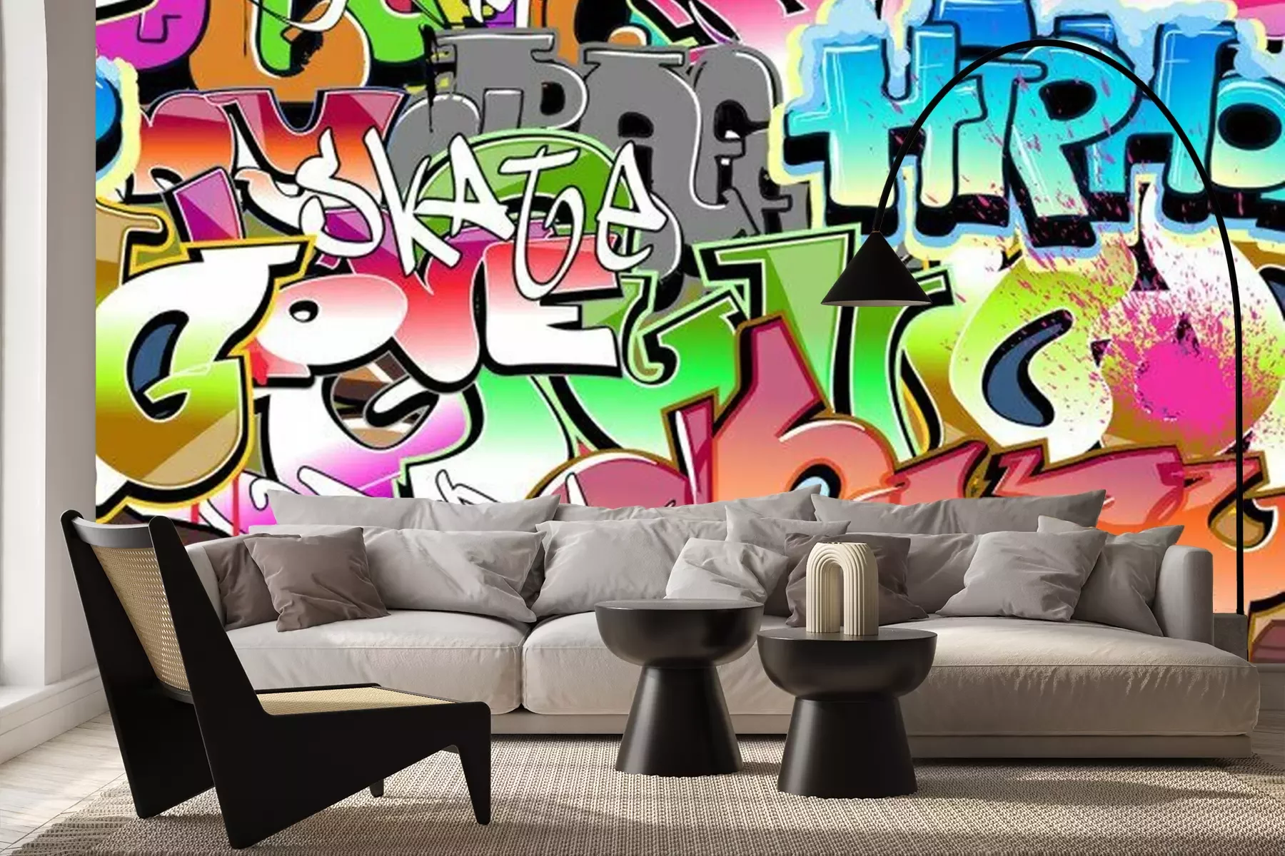 Buntes Graffiti mit Slogans und FarbeffektenFototapete
