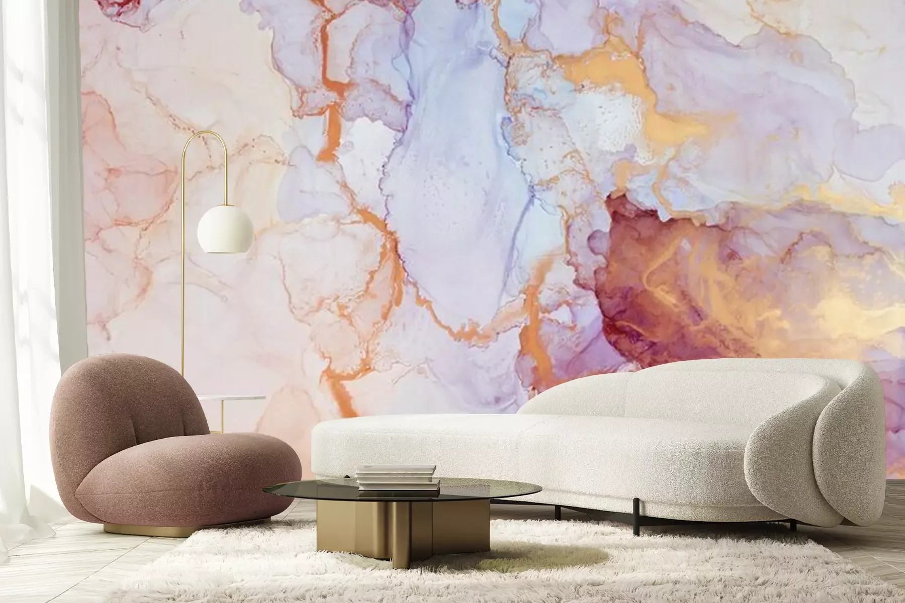 Marmorierte Textur mit RoségoldelementenFototapete