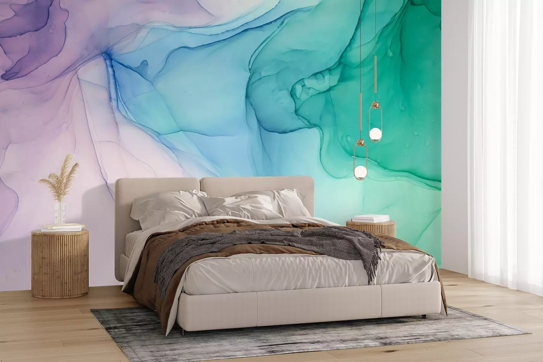 Das Material Premium+ besteht aus einer strukturierten Vinyl-Oberschicht und einem Trägermaterial (Vlies) mit einer Grammatur von 255 g/m², das kleine Unebenheiten der Wand zuverlässig kaschiert. Die feine Sandstruktur verleiht der Oberfläche eine luxuriöse Haptik, während das halbmatte Finish die Tiefe der Farben betont. Das Material ist dampfdurchlässig – so kann diese Fototapete auch in Küchen und Badezimmern eingesetzt werden. Die maximale Breite einer Tapetenbahn beträgt 100 cm. Bei größeren Abmessungen besteht die Fototapete aus mehreren gleich großen Bahnen. Der Kleber wird direkt auf die Wand aufgetragen, und die Fototapete wird auf Stoß angebracht, was für einen ästhetischen Effekt ohne sichtbare Fugen sorgt. Die Oberfläche ist pflegeleicht und kann bei Bedarf sanft mit einem feuchten Tuch abgewischt werden.