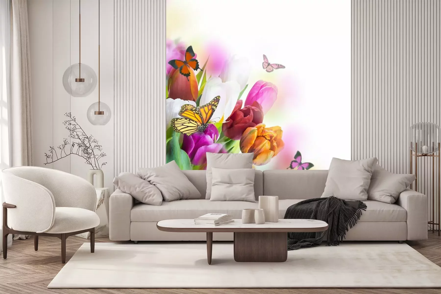 Weiße Tulpen am WasserFototapete