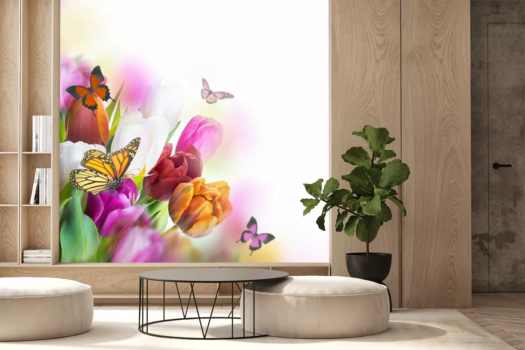 Mohnfeld und grüne Gras und SchmetterlingFototapete