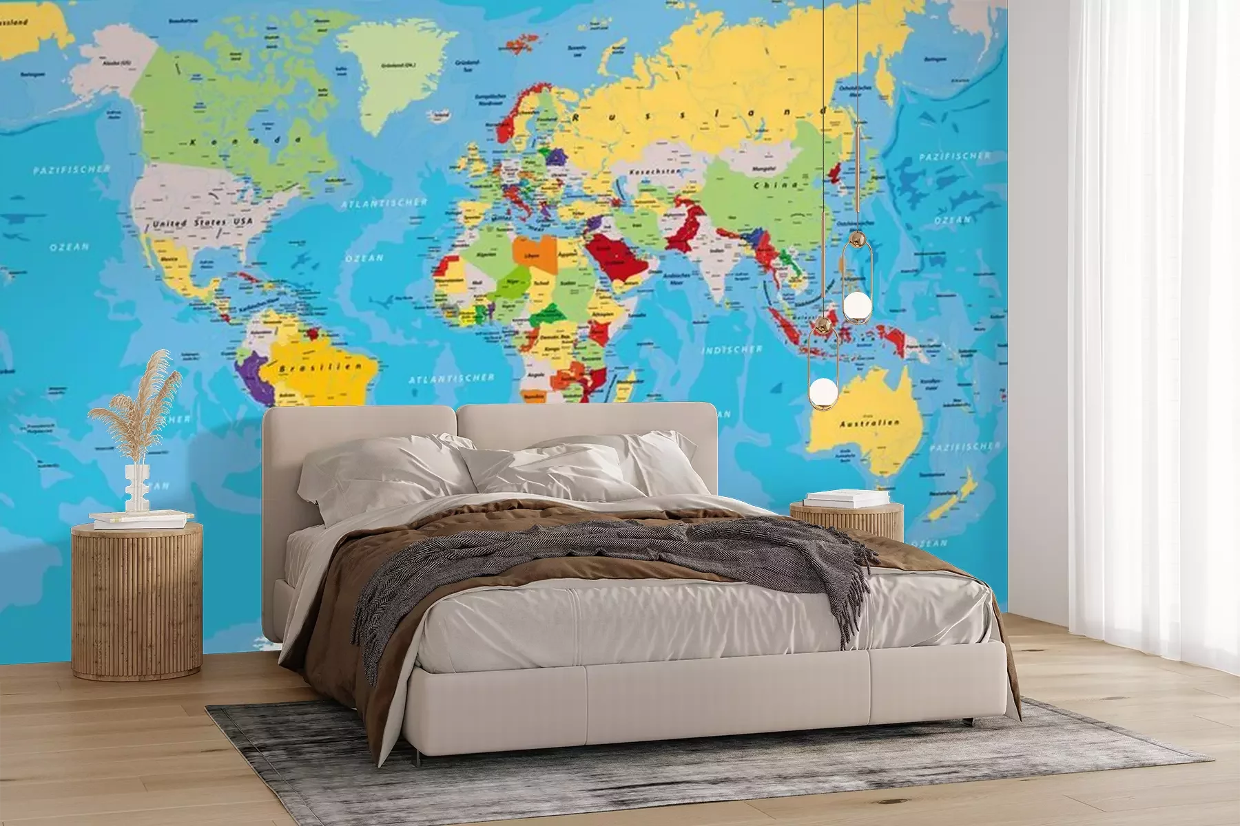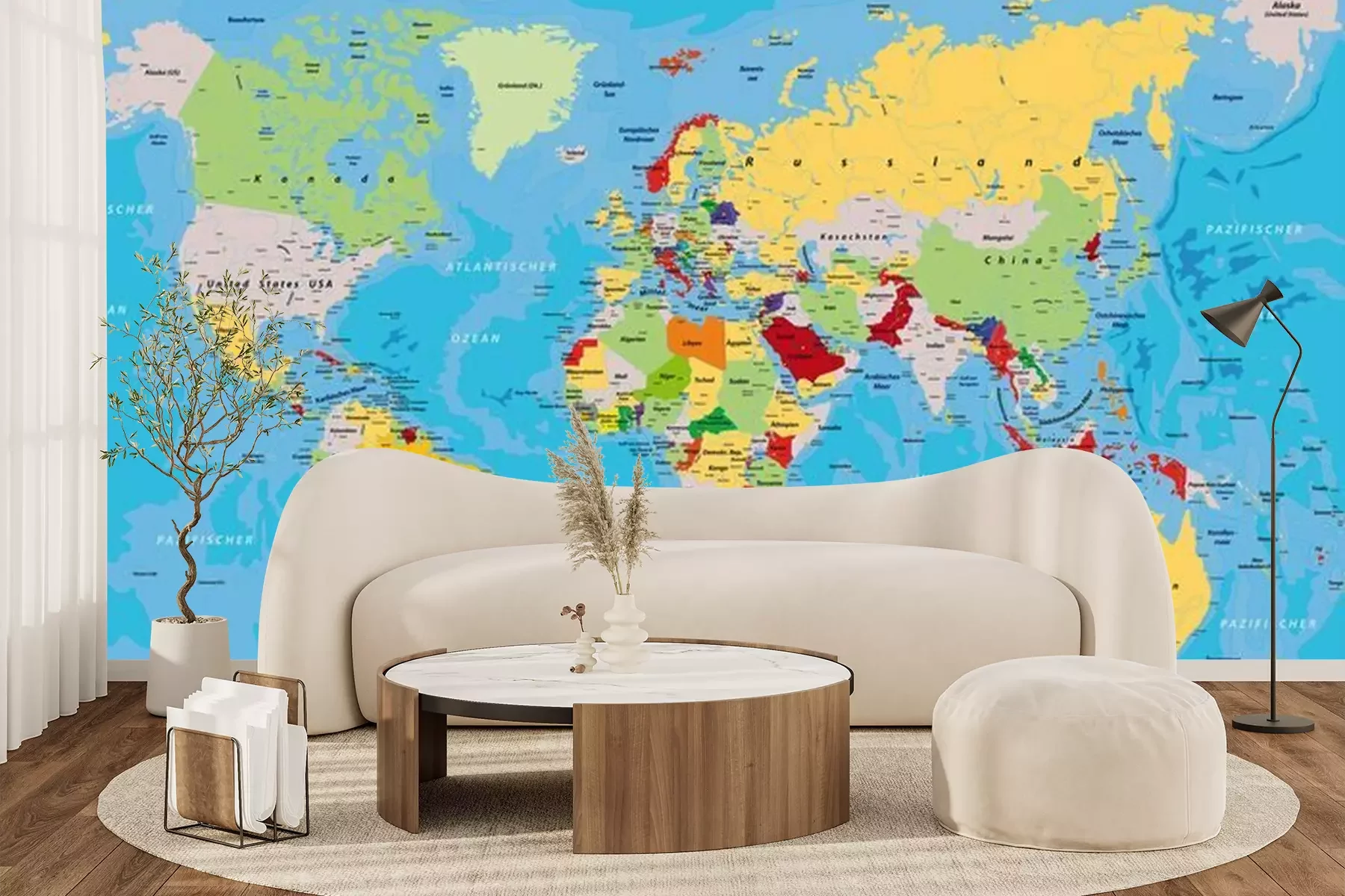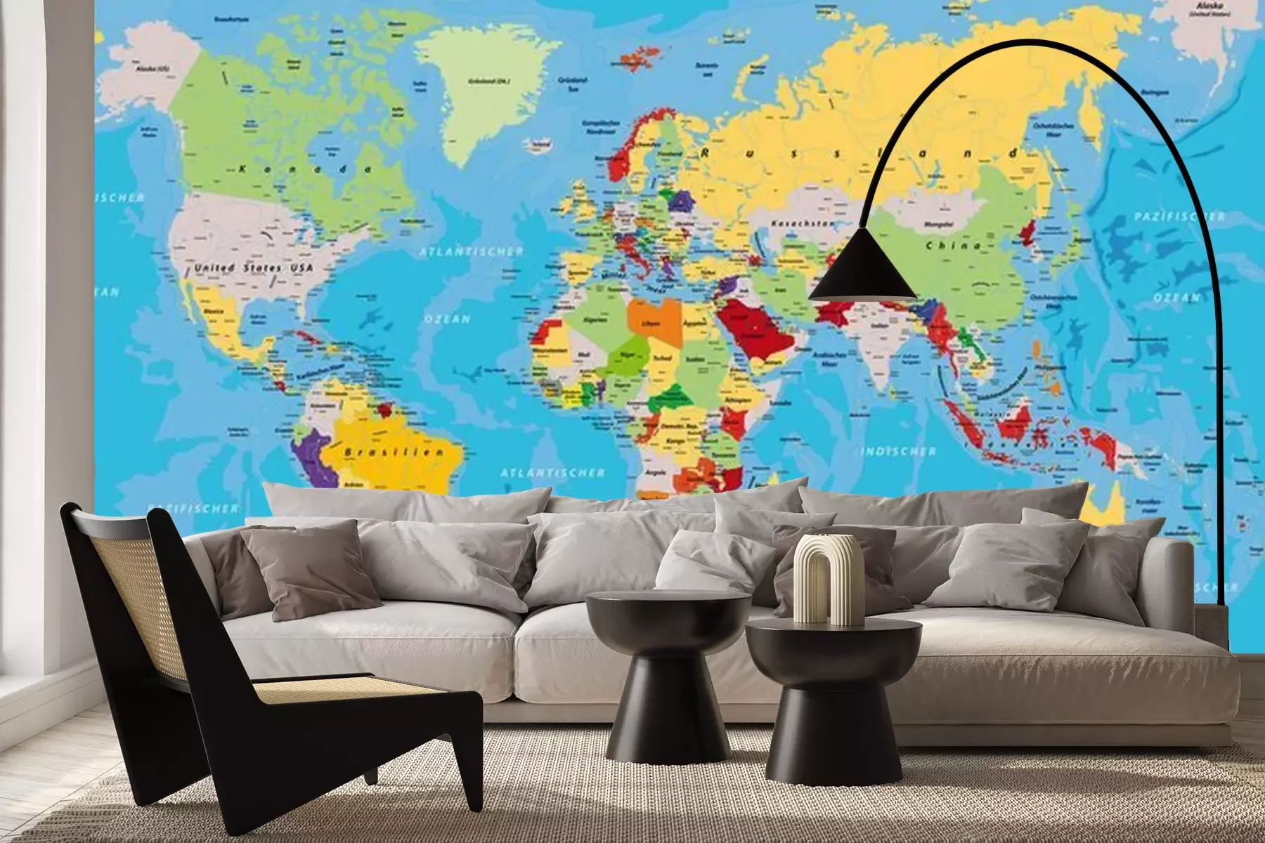 Fototapete Bunte Weltkarte mit Ländernamen