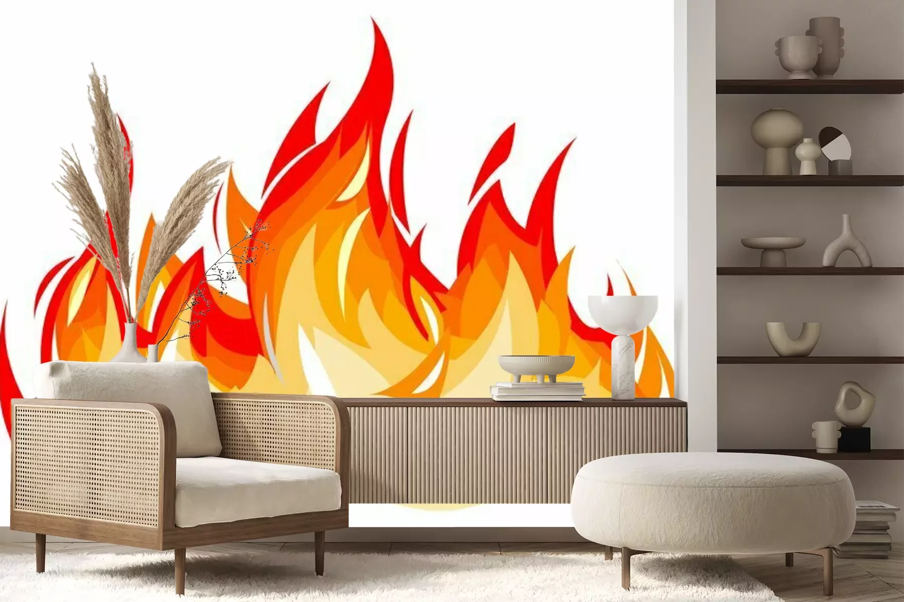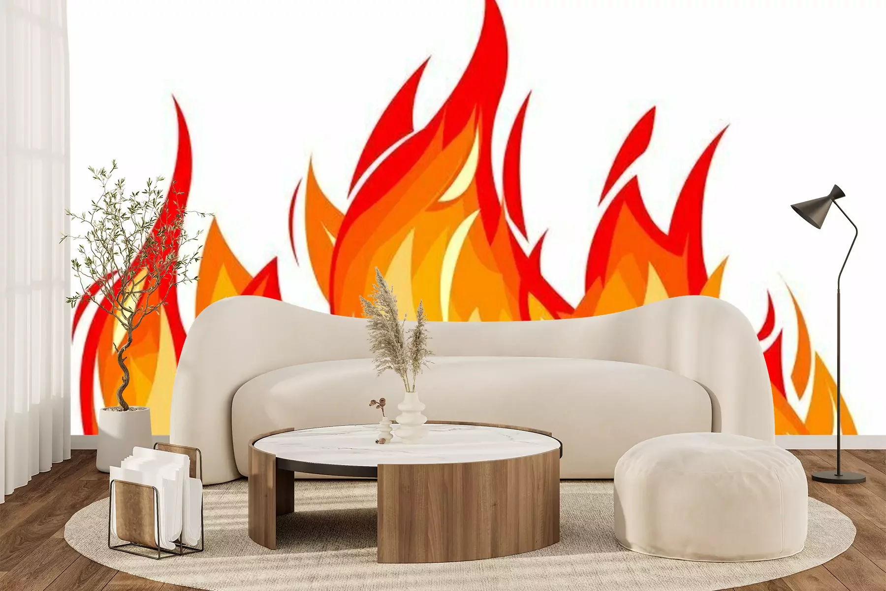 Fototapete Cartoon-Flamme des Feuers auf weißem Hintergrund