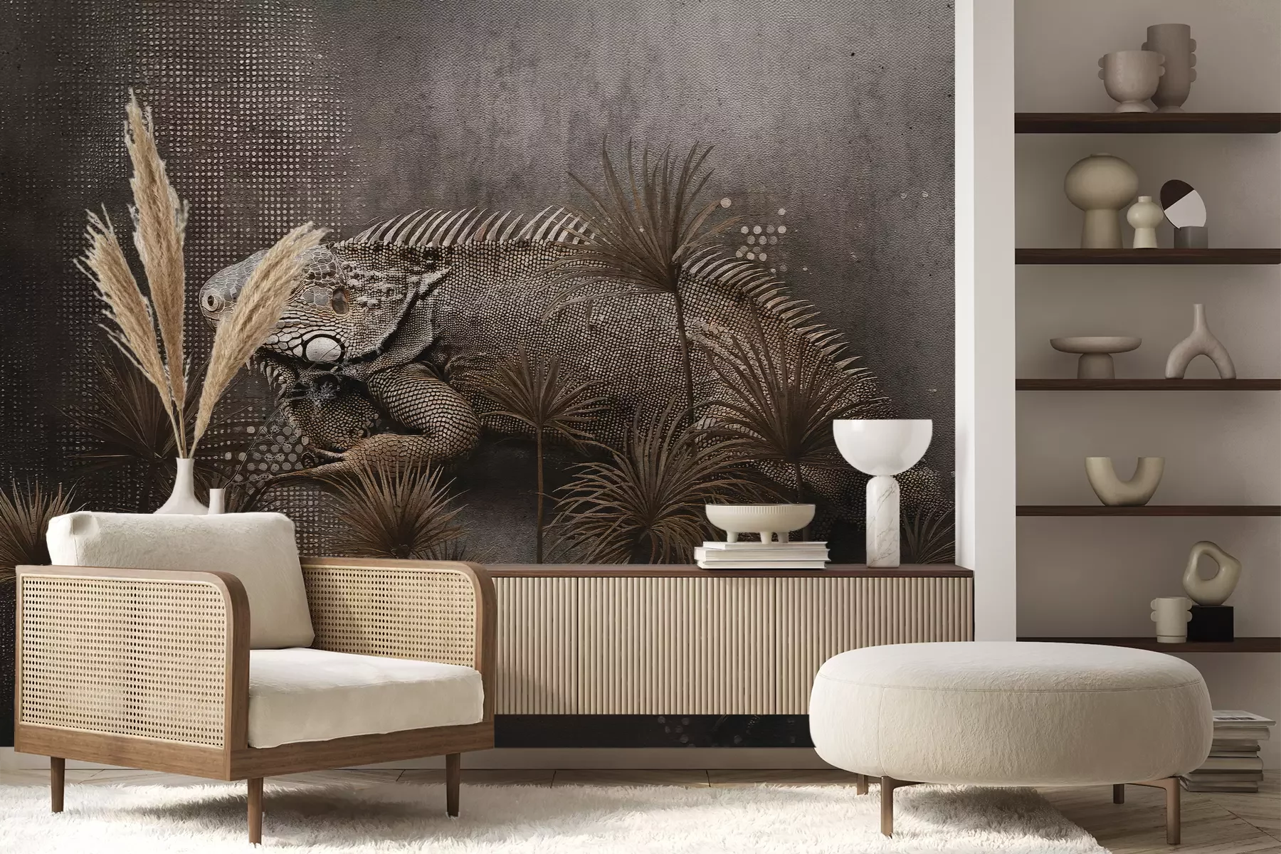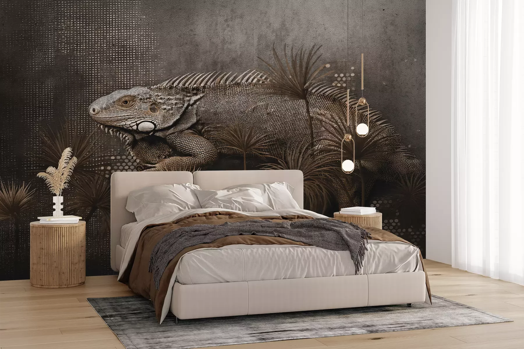 Das Material Premium+ besteht aus einer strukturierten Vinyl-Oberschicht und einem Trägermaterial (Vlies) mit einer Grammatur von 255 g/m², das kleine Unebenheiten der Wand zuverlässig kaschiert. Die feine Sandstruktur verleiht der Oberfläche eine luxuriöse Haptik, während das halbmatte Finish die Tiefe der Farben betont. Das Material ist dampfdurchlässig – so kann diese Fototapete auch in Küchen und Badezimmern eingesetzt werden. Die maximale Breite einer Tapetenbahn beträgt 100 cm. Bei größeren Abmessungen besteht die Fototapete aus mehreren gleich großen Bahnen. Der Kleber wird direkt auf die Wand aufgetragen, und die Fototapete wird auf Stoß angebracht, was für einen ästhetischen Effekt ohne sichtbare Fugen sorgt. Die Oberfläche ist pflegeleicht und kann bei Bedarf sanft mit einem feuchten Tuch abgewischt werden.