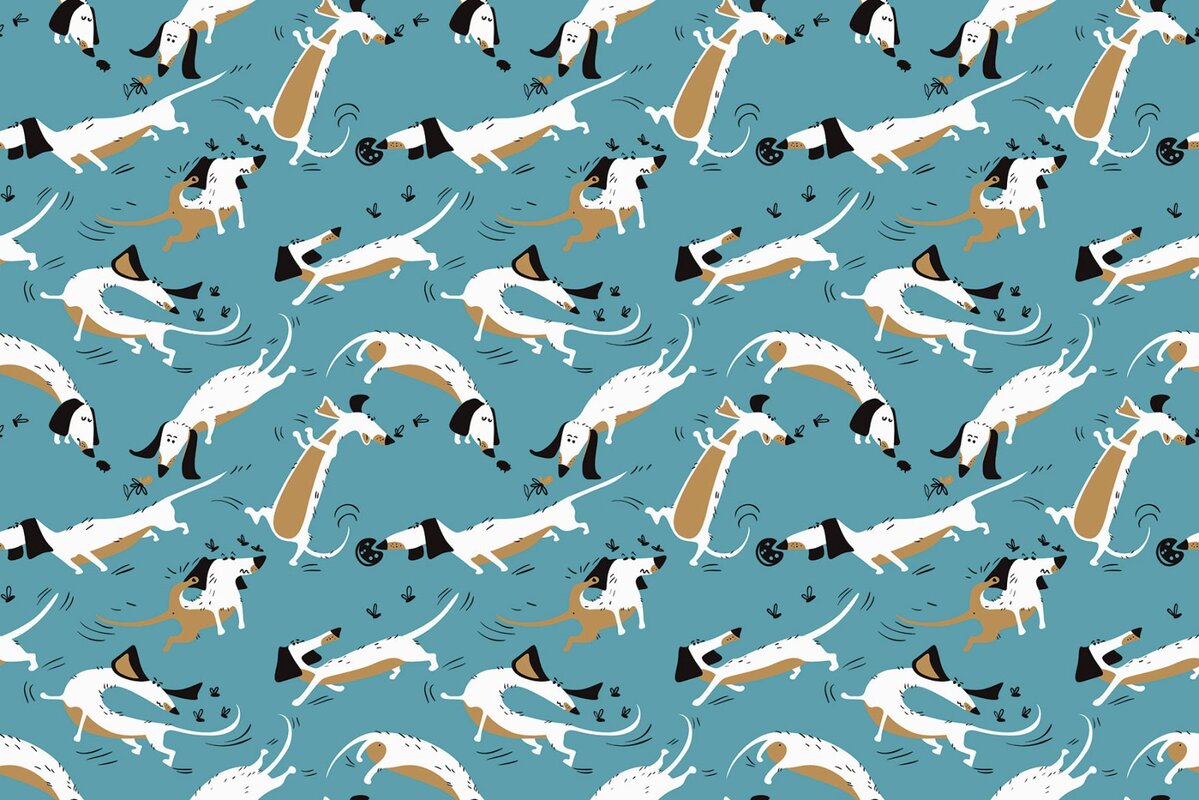 Fototapete: Comic-Muster Hunde auf blauem Hintergrund Illustration