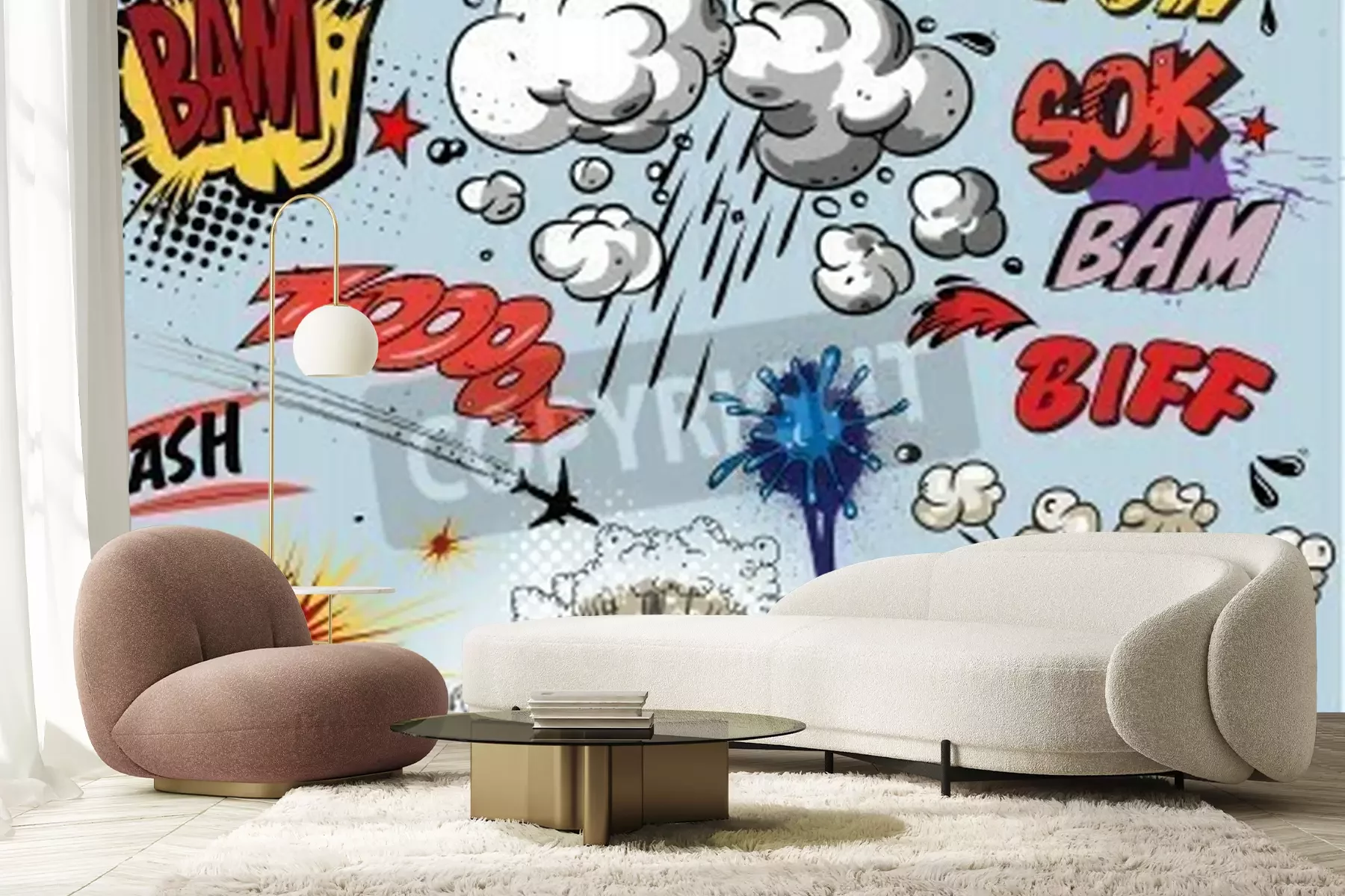 Das Material Standard ist ein hochwertiges Latexmaterial mit einer glatten, matten Oberfläche. Durch den Einsatz von HP-Latex-Drucktechnologie sind die Farben satt, langlebig und UV-beständig. So bleibt das Muster über Jahre hinweg makellos schön. Die verschmutzte Oberfläche dieses Materials kann sanft mit einem trockenen Tuch abgewischt werden. Die maximale Breite einer einzelnen Bahn beträgt 95 cm oder 105 cm – je nach Breite der bestellten Fototapete. Bei Fototapeten mit größeren Abmessungen besteht der Ausdruck aus mehreren gleich großen Tapetenbahnen. Die Fototapete wird auf Stoß angebracht, wodurch die Fugen nahezu unsichtbar sind.