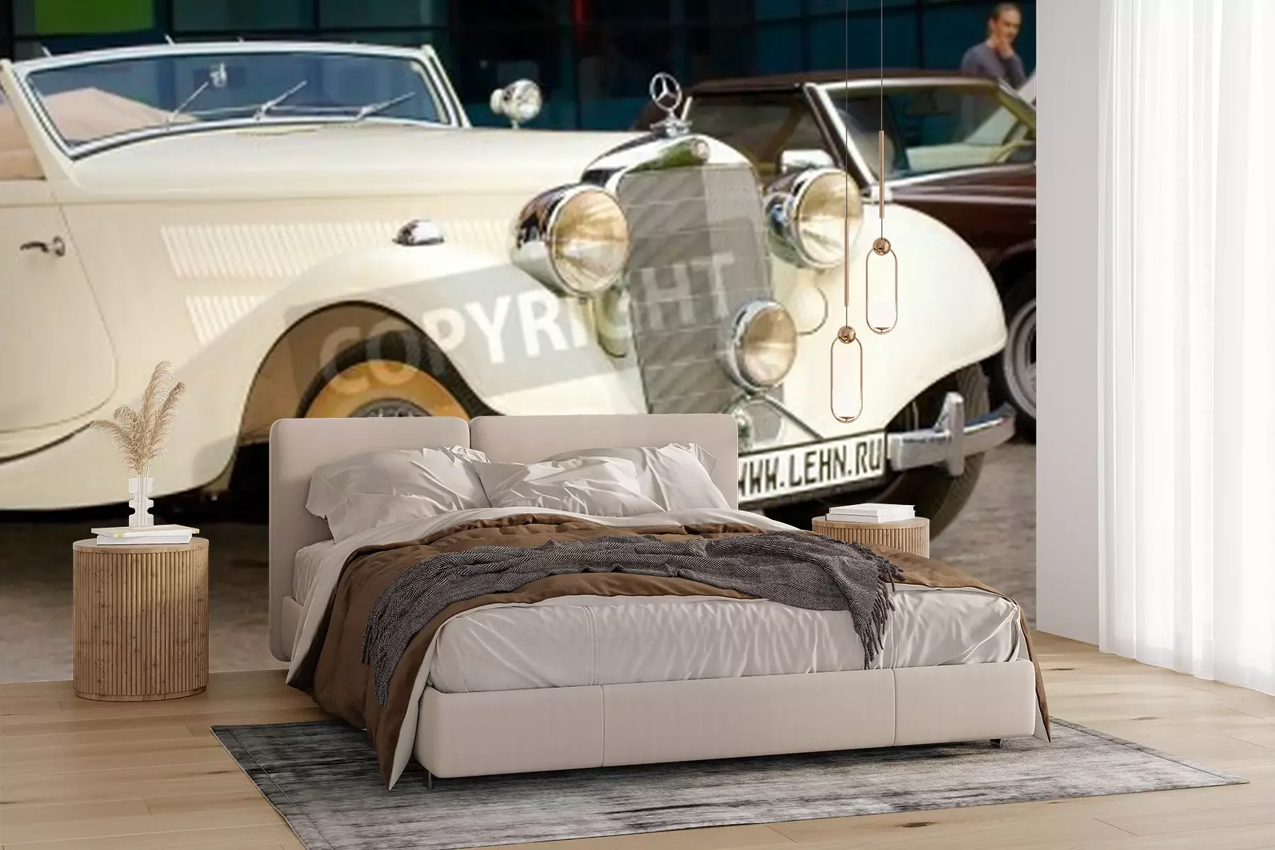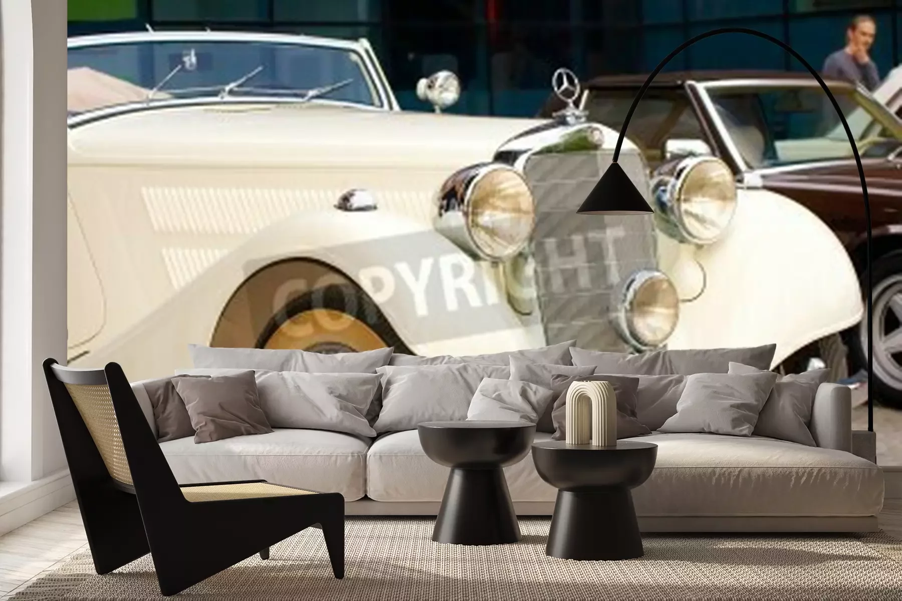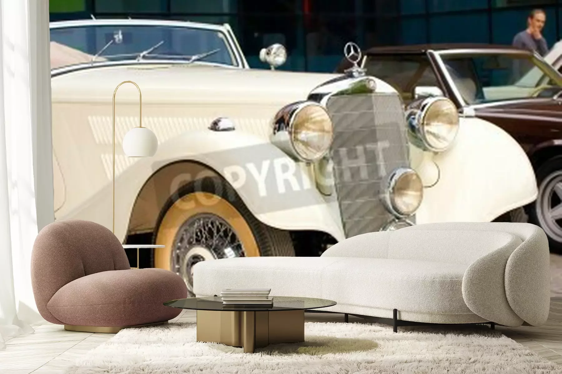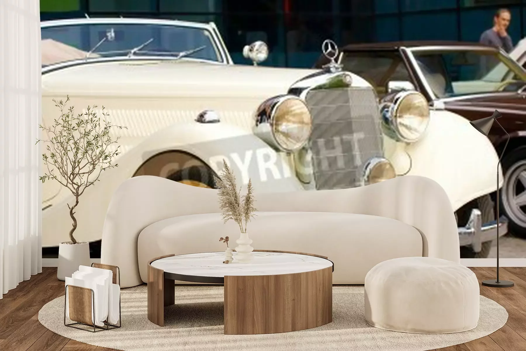 Fototapete Cremefarbenes Auto Oldtimer