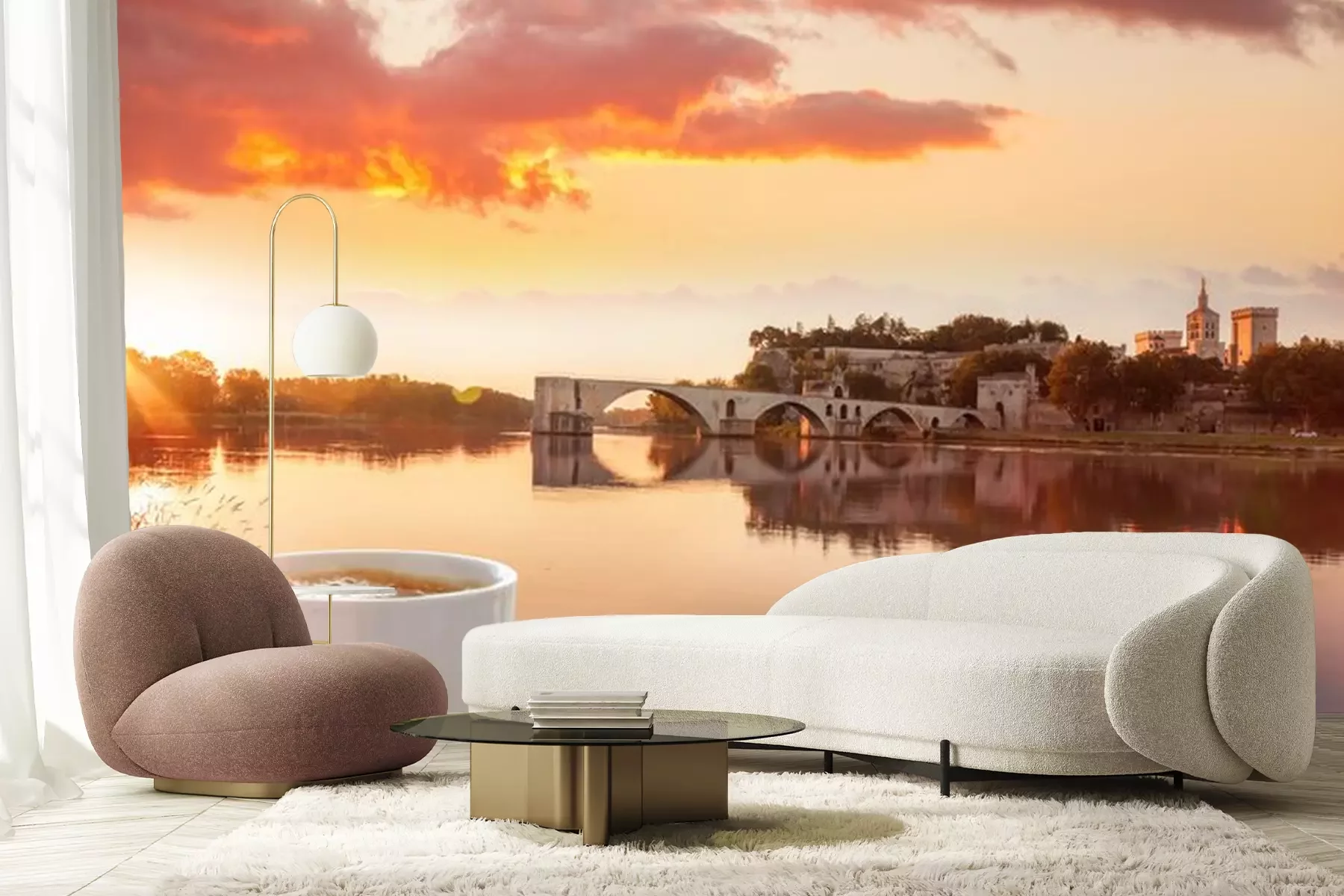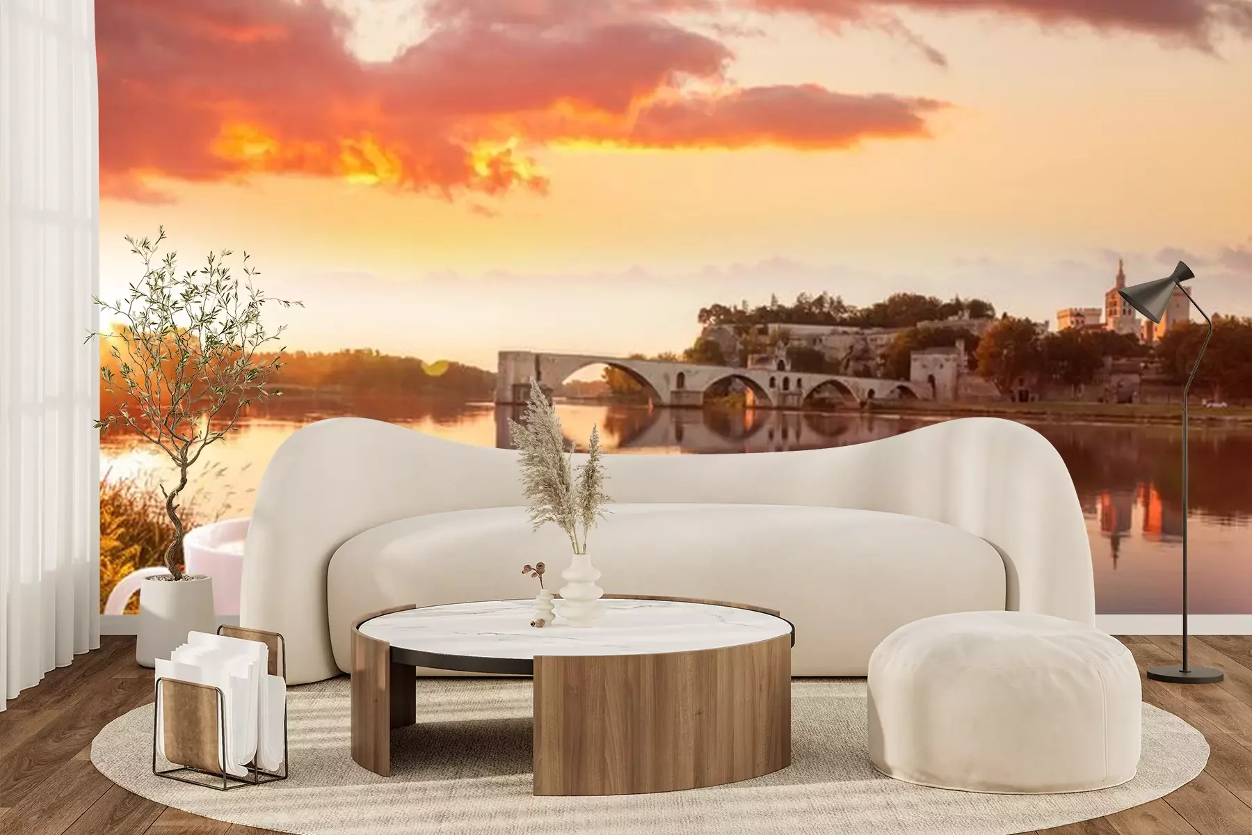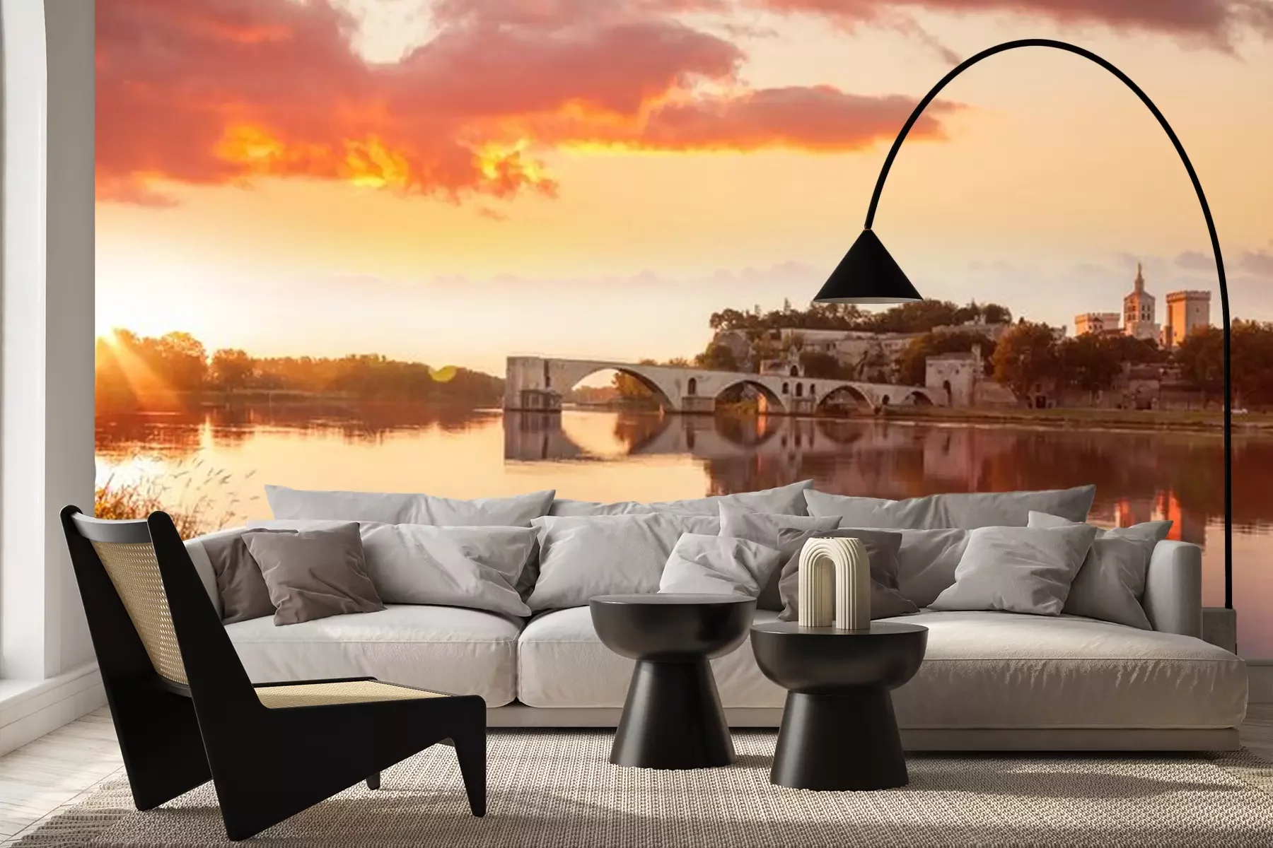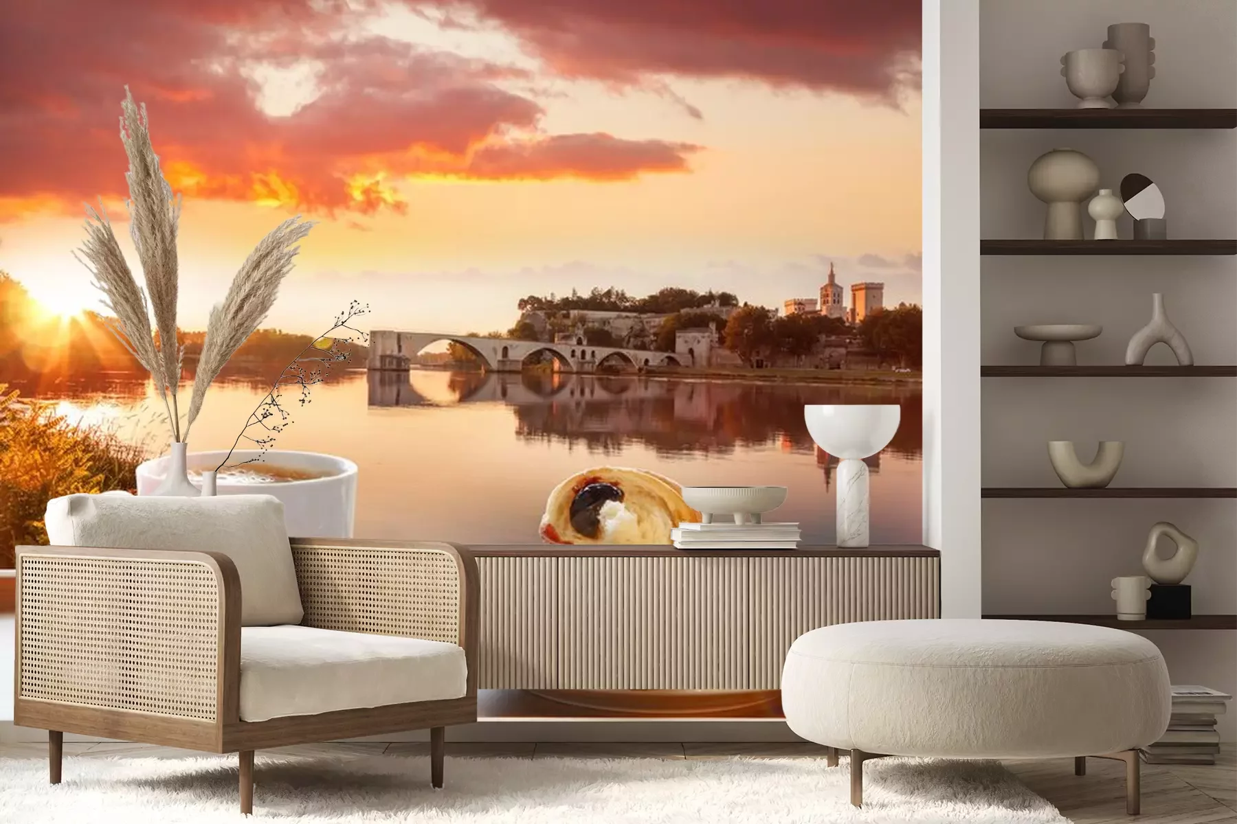 Fototapete Croissant und Kaffee bei Sonnenuntergang