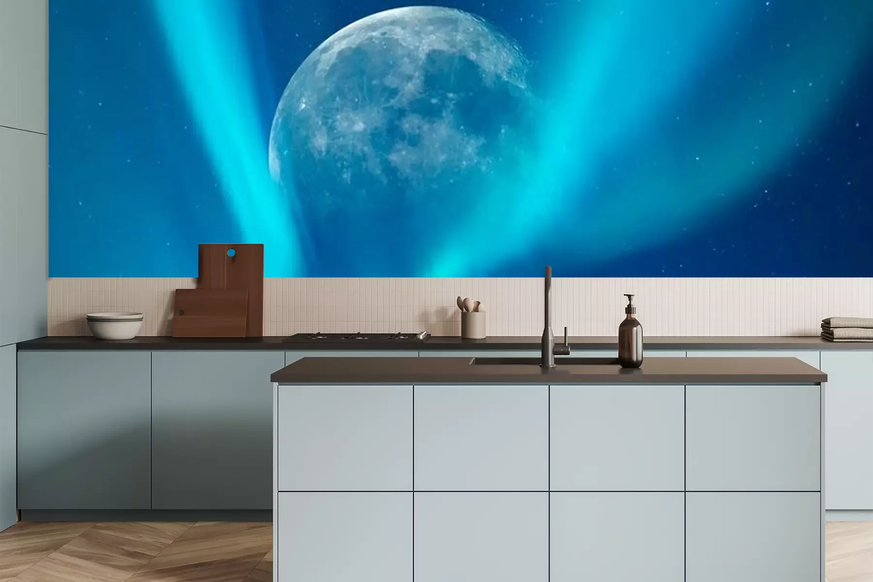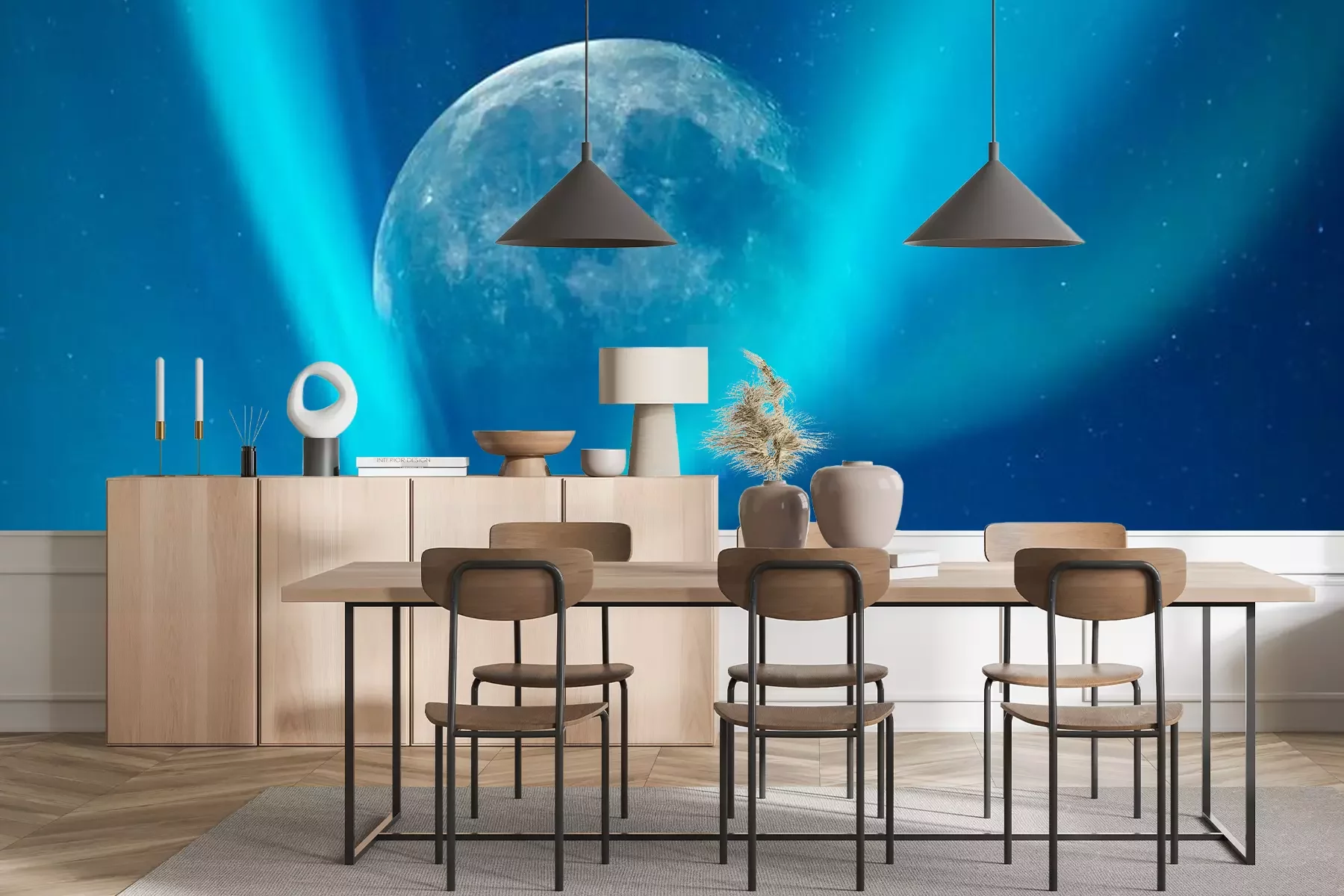 Fototapete Das Nordlicht vor dem Hintergrund des Vollmonds