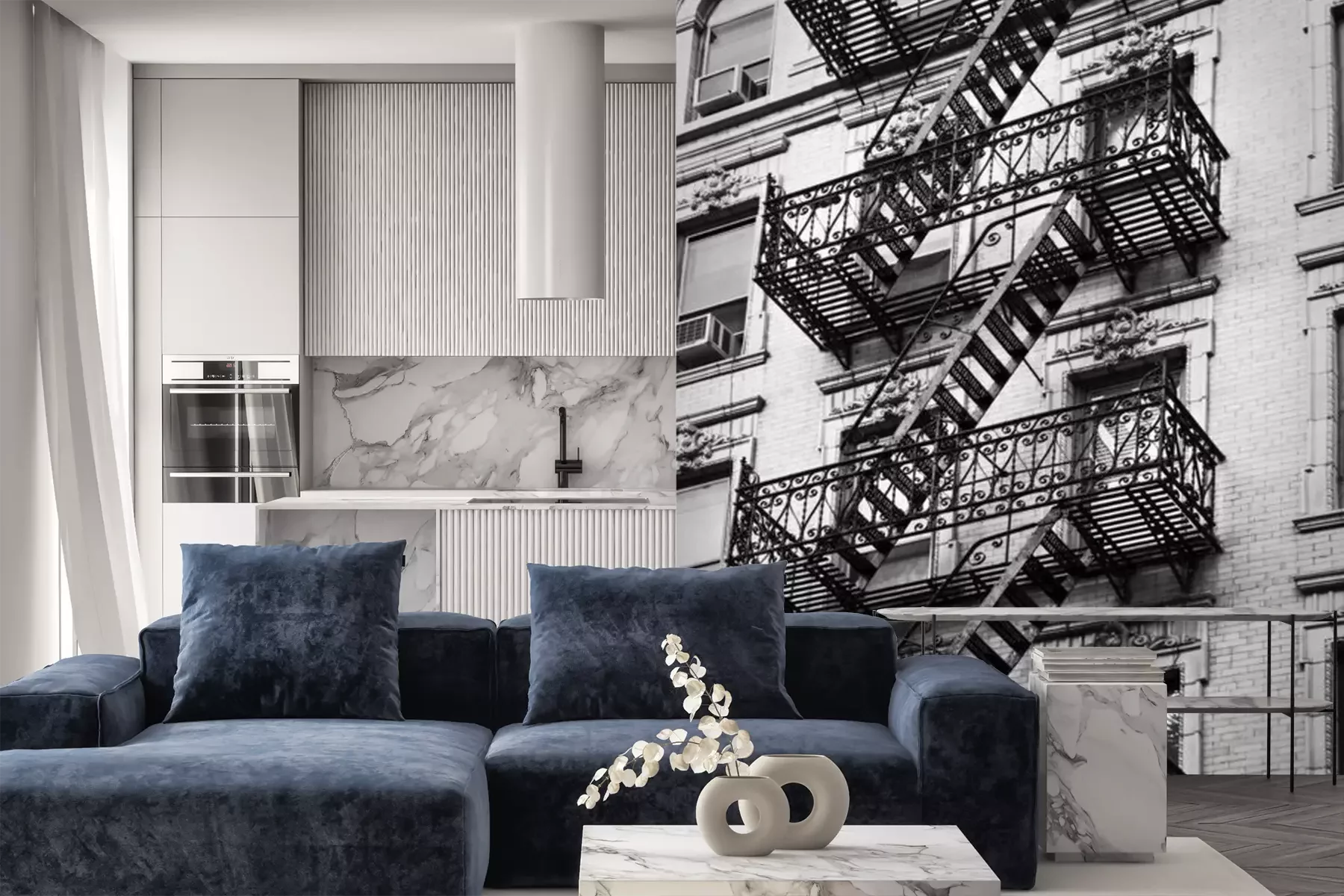 Das Material Premium+ besteht aus einer strukturierten Vinyl-Oberschicht und einem Trägermaterial (Vlies) mit einer Grammatur von 255 g/m², das kleine Unebenheiten der Wand zuverlässig kaschiert. Die feine Sandstruktur verleiht der Oberfläche eine luxuriöse Haptik, während das halbmatte Finish die Tiefe der Farben betont. Das Material ist dampfdurchlässig – so kann diese Fototapete auch in Küchen und Badezimmern eingesetzt werden. Die maximale Breite einer Tapetenbahn beträgt 100 cm. Bei größeren Abmessungen besteht die Fototapete aus mehreren gleich großen Bahnen. Der Kleber wird direkt auf die Wand aufgetragen, und die Fototapete wird auf Stoß angebracht, was für einen ästhetischen Effekt ohne sichtbare Fugen sorgt. Die Oberfläche ist pflegeleicht und kann bei Bedarf sanft mit einem feuchten Tuch abgewischt werden.