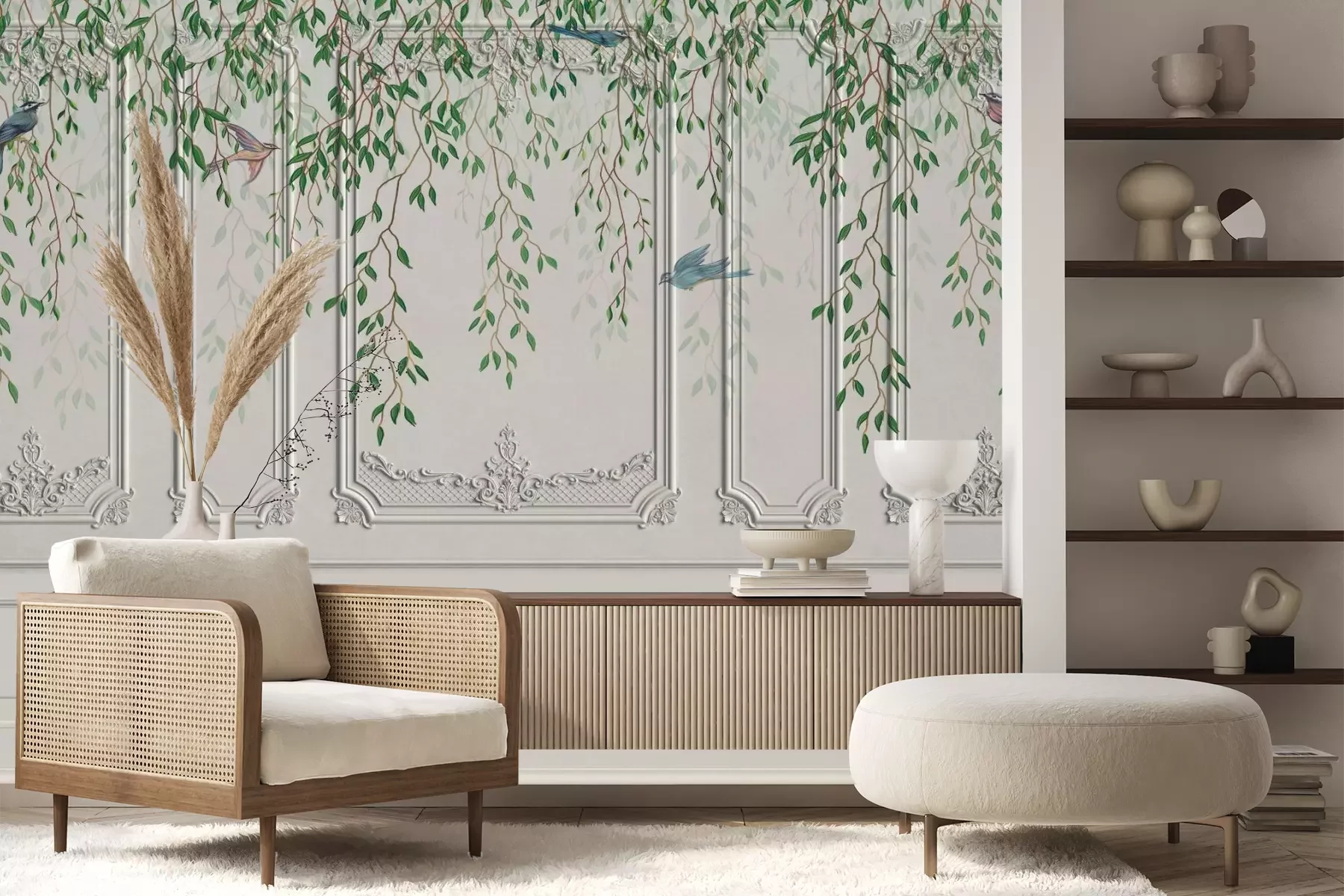 Das Material Premium+ besteht aus einer strukturierten Vinyl-Oberschicht und einem Trägermaterial (Vlies) mit einer Grammatur von 255 g/m², das kleine Unebenheiten der Wand zuverlässig kaschiert. Die feine Sandstruktur verleiht der Oberfläche eine luxuriöse Haptik, während das halbmatte Finish die Tiefe der Farben betont. Das Material ist dampfdurchlässig – so kann diese Fototapete auch in Küchen und Badezimmern eingesetzt werden. Die maximale Breite einer Tapetenbahn beträgt 100 cm. Bei größeren Abmessungen besteht die Fototapete aus mehreren gleich großen Bahnen. Der Kleber wird direkt auf die Wand aufgetragen, und die Fototapete wird auf Stoß angebracht, was für einen ästhetischen Effekt ohne sichtbare Fugen sorgt. Die Oberfläche ist pflegeleicht und kann bei Bedarf sanft mit einem feuchten Tuch abgewischt werden.