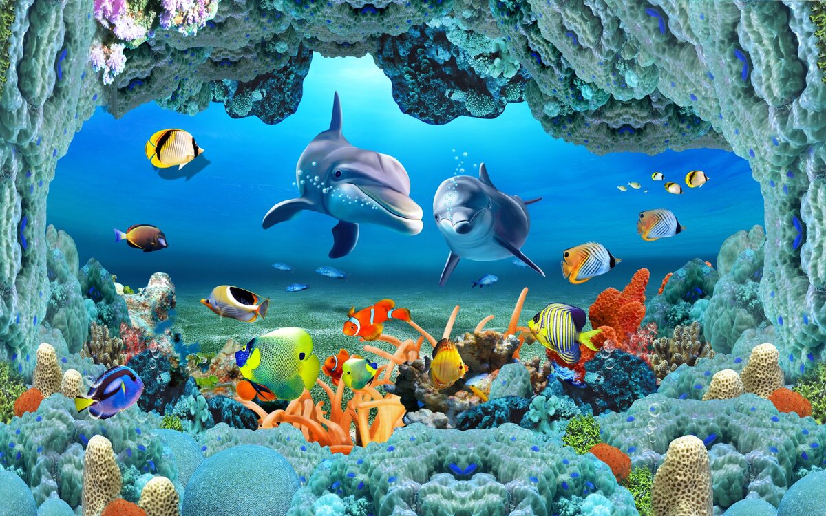 Fototapete: Delfine und Fische in der Unterwasserwelt Meereslandschaft