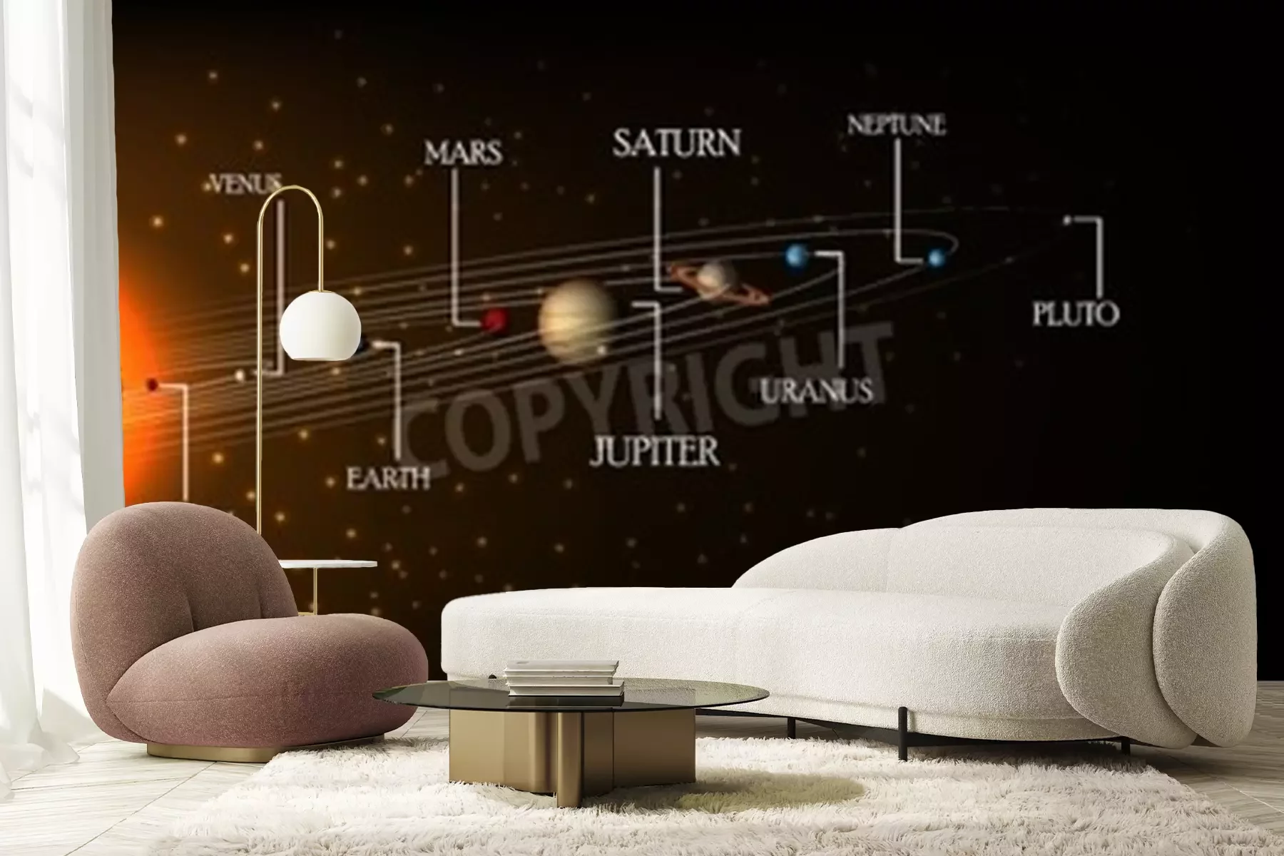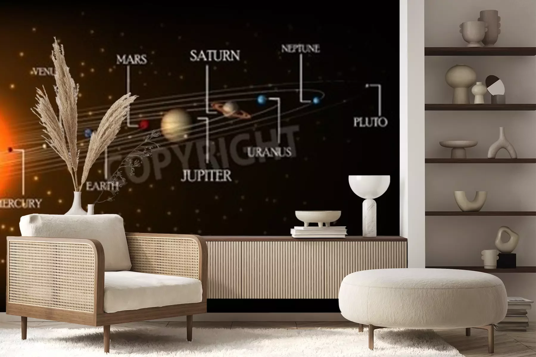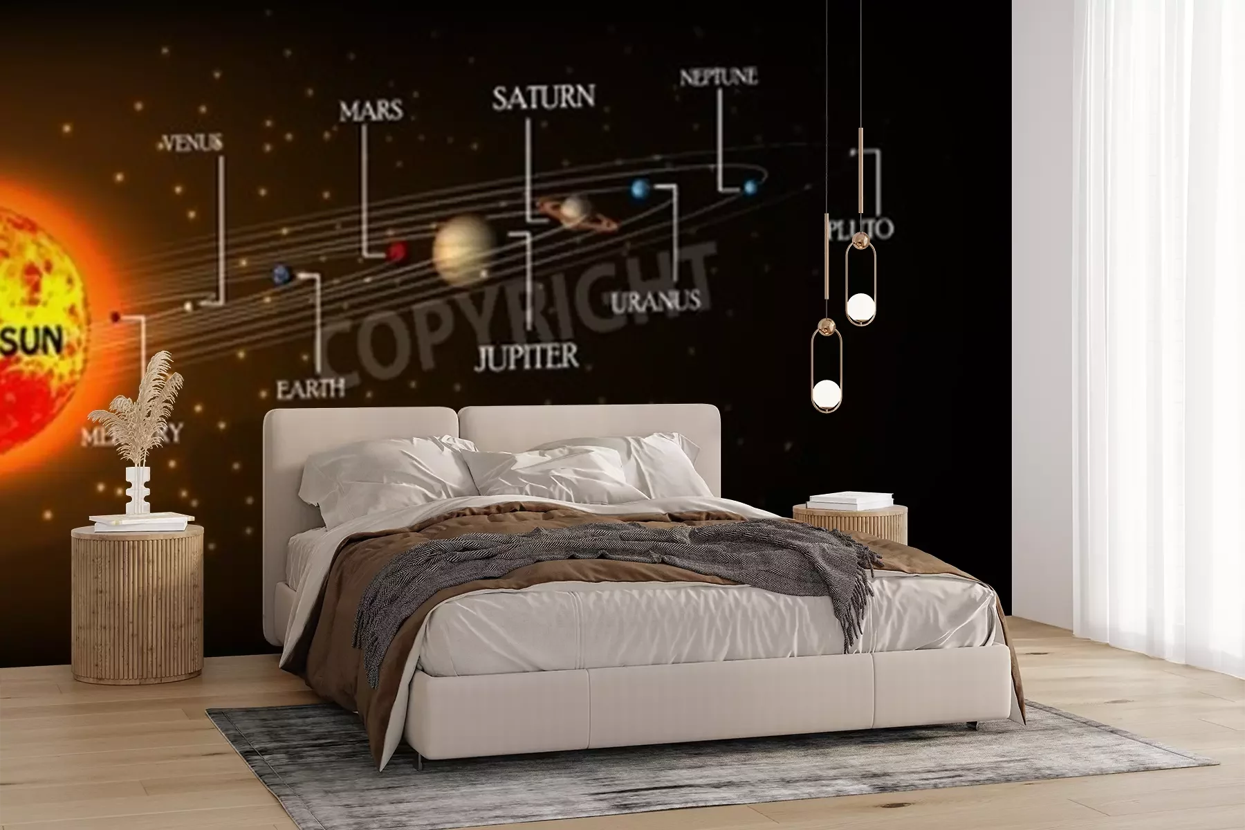 Fototapete Detaillierte Infografik mit Sonnensystem