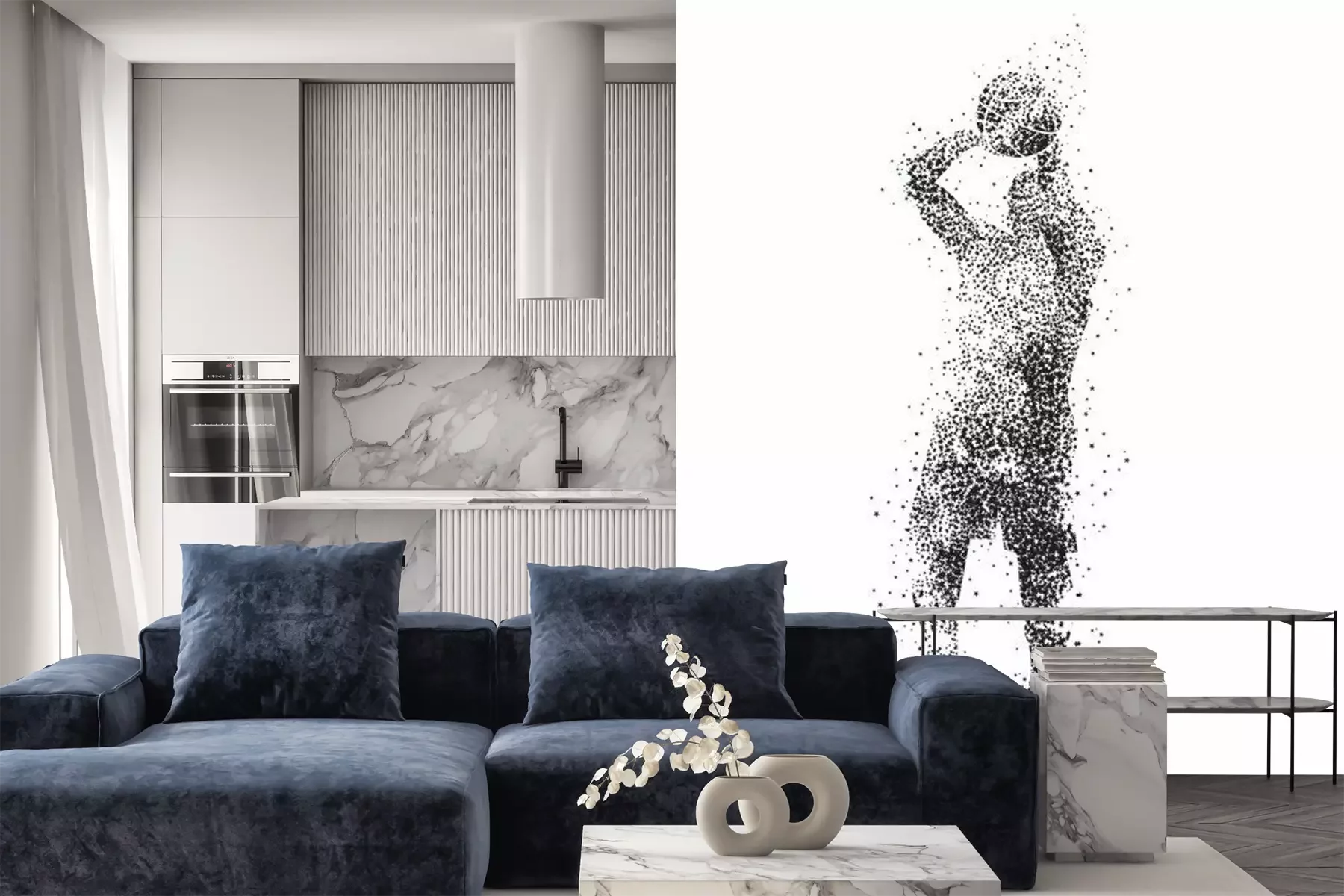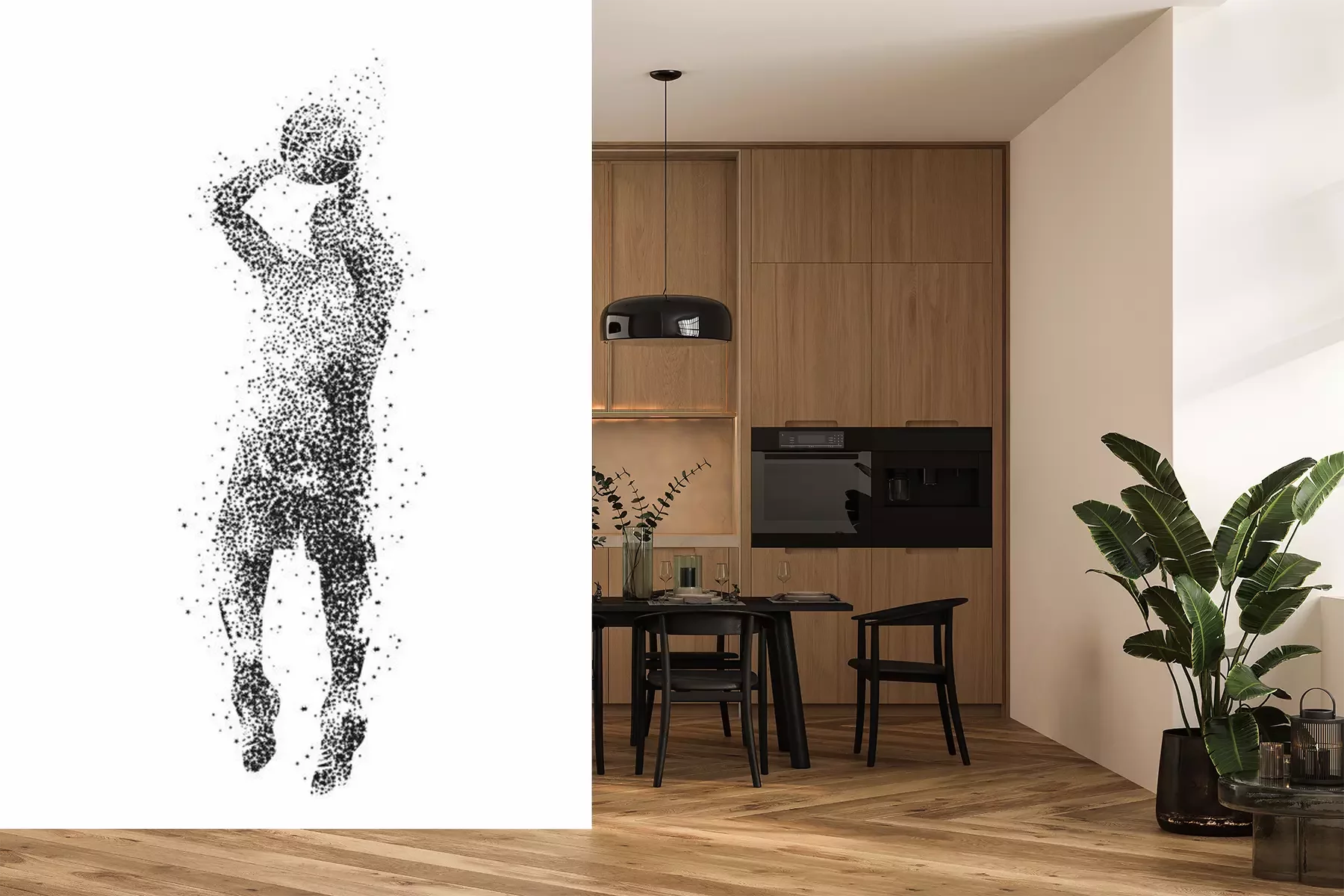 Das Material Premium+ besteht aus einer strukturierten Vinyl-Oberschicht und einem Trägermaterial (Vlies) mit einer Grammatur von 255 g/m², das kleine Unebenheiten der Wand zuverlässig kaschiert. Die feine Sandstruktur verleiht der Oberfläche eine luxuriöse Haptik, während das halbmatte Finish die Tiefe der Farben betont. Das Material ist dampfdurchlässig – so kann diese Fototapete auch in Küchen und Badezimmern eingesetzt werden. Die maximale Breite einer Tapetenbahn beträgt 100 cm. Bei größeren Abmessungen besteht die Fototapete aus mehreren gleich großen Bahnen. Der Kleber wird direkt auf die Wand aufgetragen, und die Fototapete wird auf Stoß angebracht, was für einen ästhetischen Effekt ohne sichtbare Fugen sorgt. Die Oberfläche ist pflegeleicht und kann bei Bedarf sanft mit einem feuchten Tuch abgewischt werden.