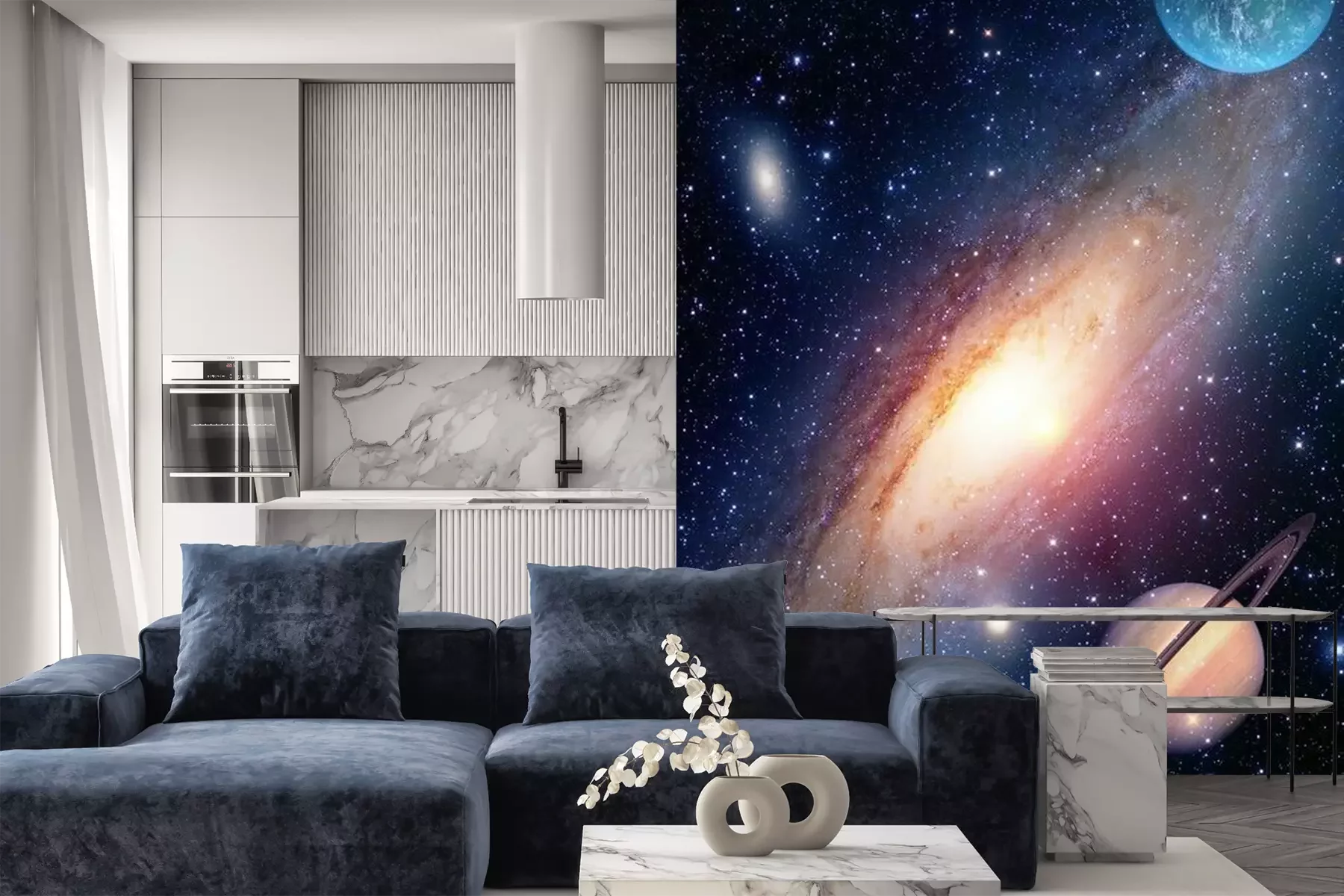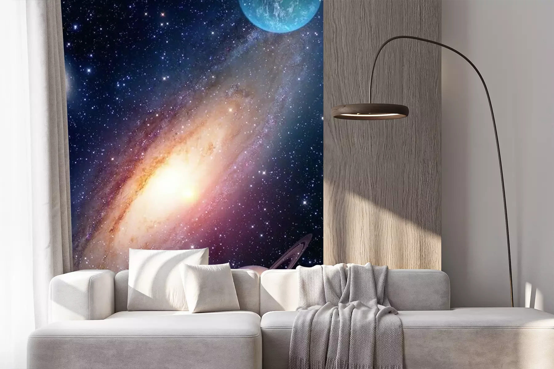 Das Material Premium+ besteht aus einer strukturierten Vinyl-Oberschicht und einem Trägermaterial (Vlies) mit einer Grammatur von 255 g/m², das kleine Unebenheiten der Wand zuverlässig kaschiert. Die feine Sandstruktur verleiht der Oberfläche eine luxuriöse Haptik, während das halbmatte Finish die Tiefe der Farben betont. Das Material ist dampfdurchlässig – so kann diese Fototapete auch in Küchen und Badezimmern eingesetzt werden. Die maximale Breite einer Tapetenbahn beträgt 100 cm. Bei größeren Abmessungen besteht die Fototapete aus mehreren gleich großen Bahnen. Der Kleber wird direkt auf die Wand aufgetragen, und die Fototapete wird auf Stoß angebracht, was für einen ästhetischen Effekt ohne sichtbare Fugen sorgt. Die Oberfläche ist pflegeleicht und kann bei Bedarf sanft mit einem feuchten Tuch abgewischt werden.