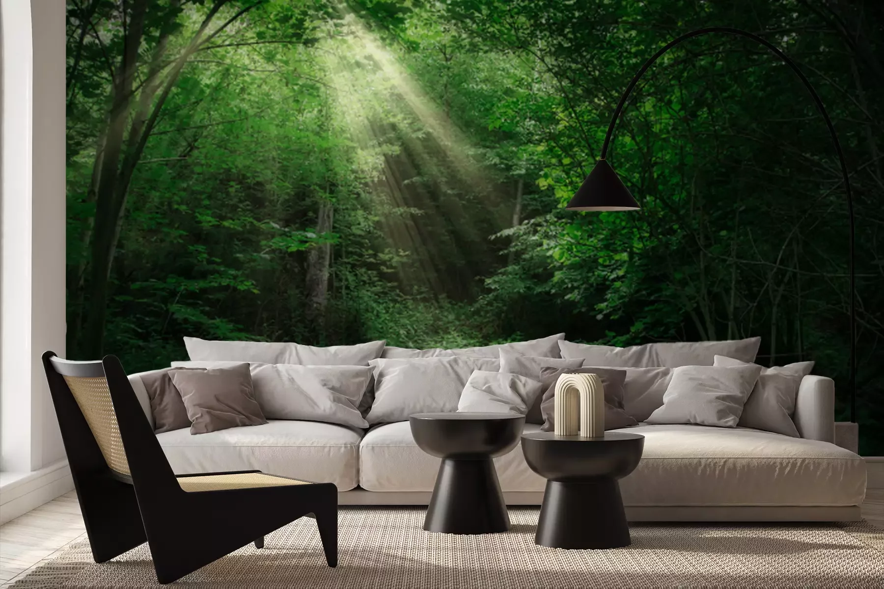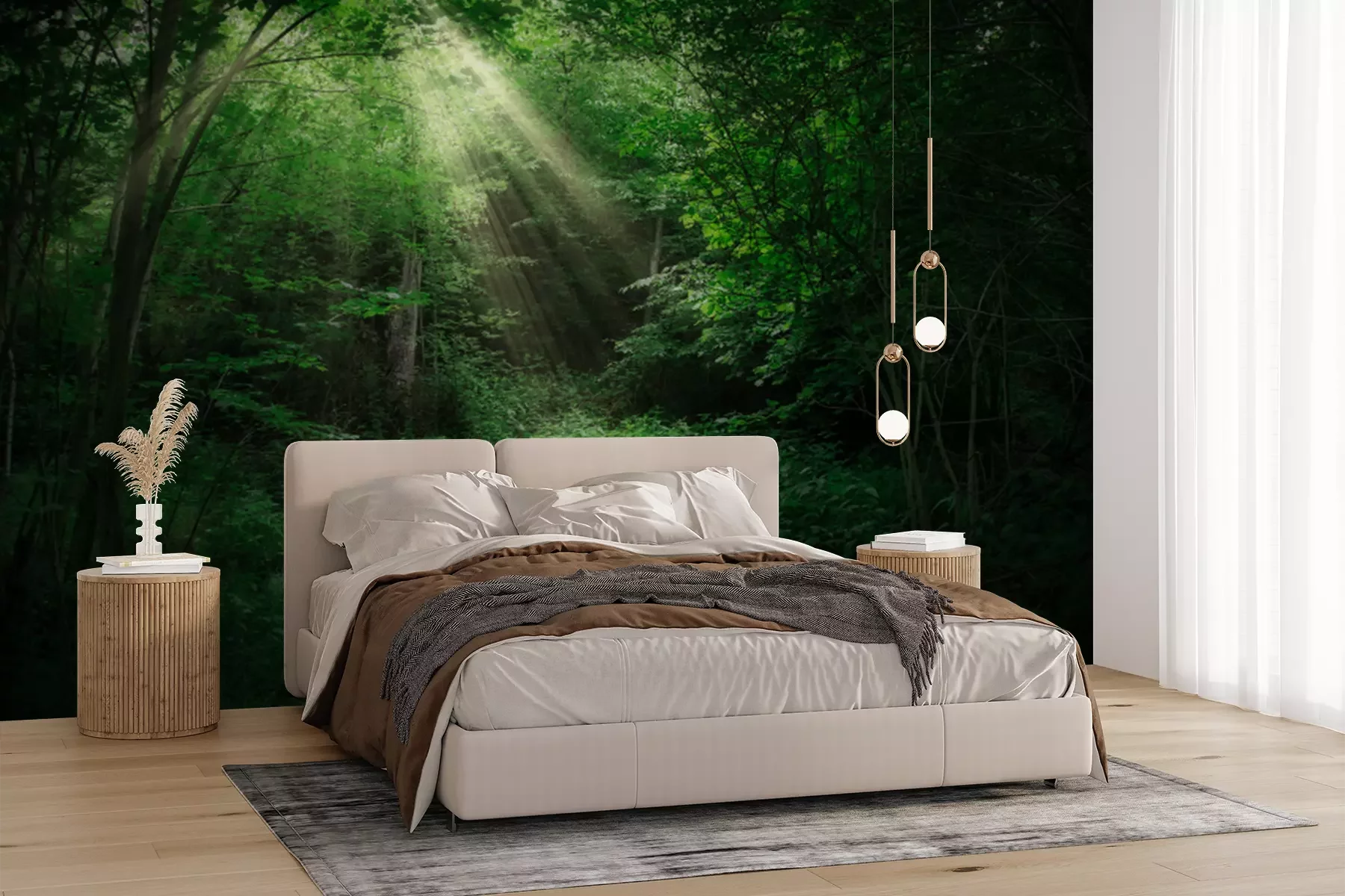 Fototapete Die Sonnenstrahlen zwischen den Ästen der Bäume