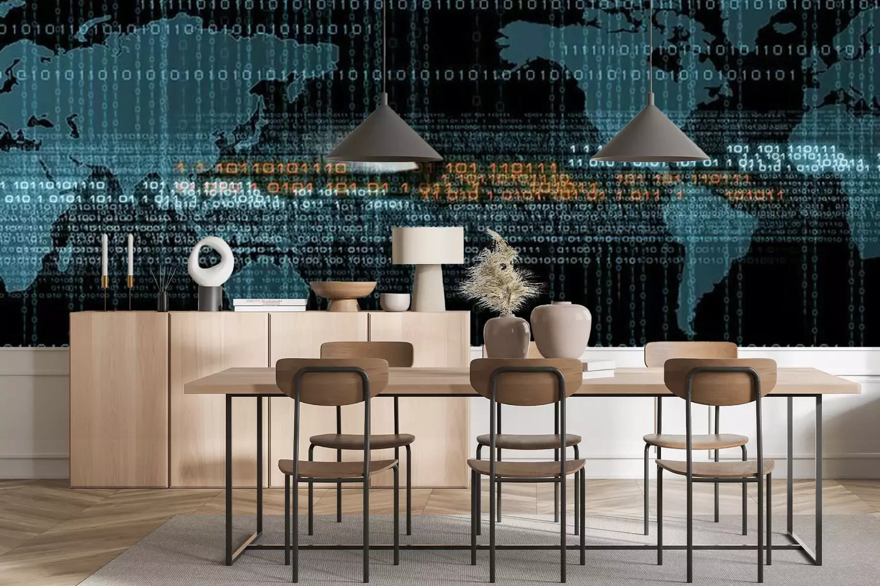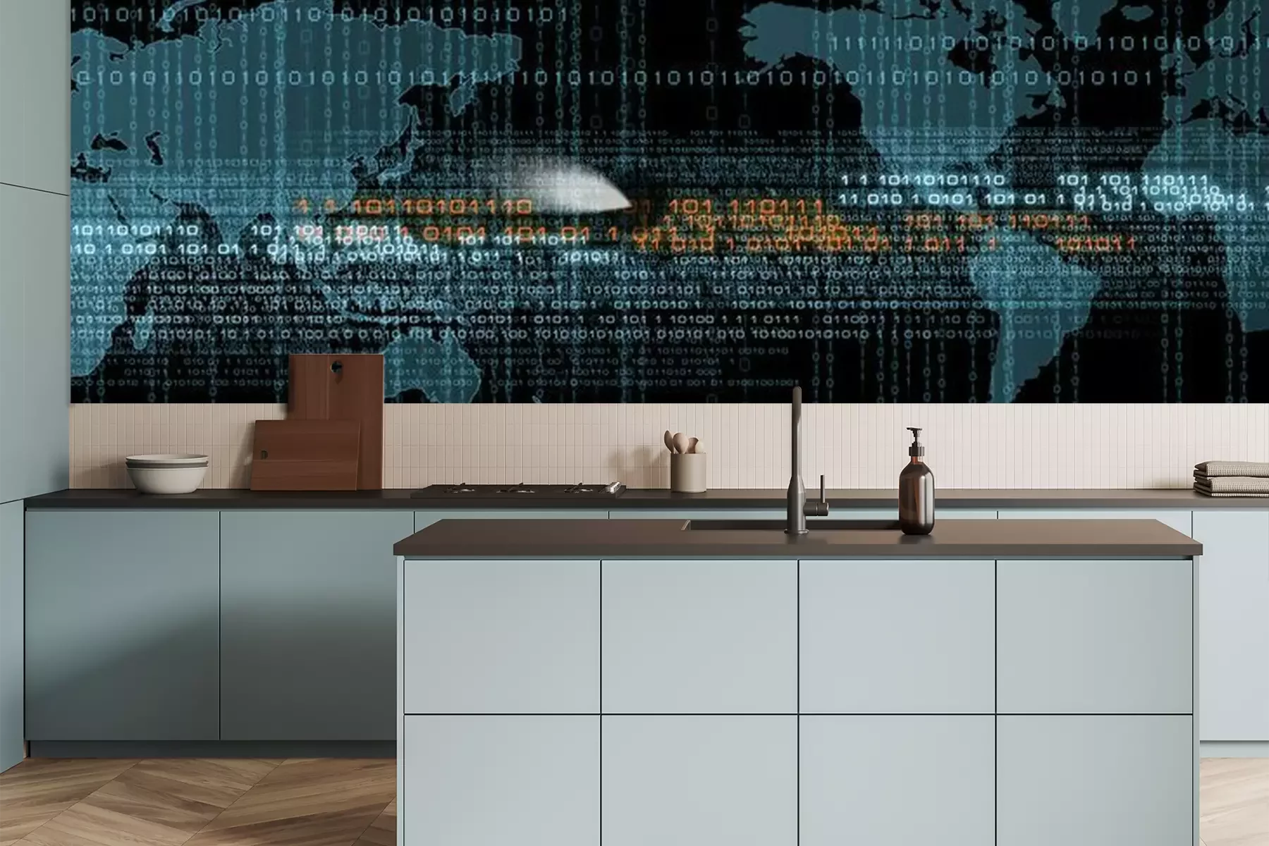 Fototapete Digitale Daten vor dem Hintergrund der Weltkarte