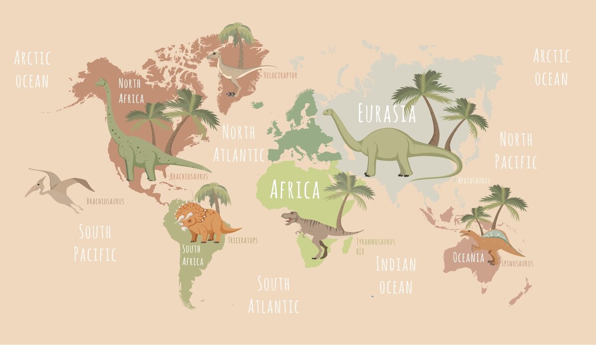 Fototapete: Dinosaurier-Weltkarte für Kinder