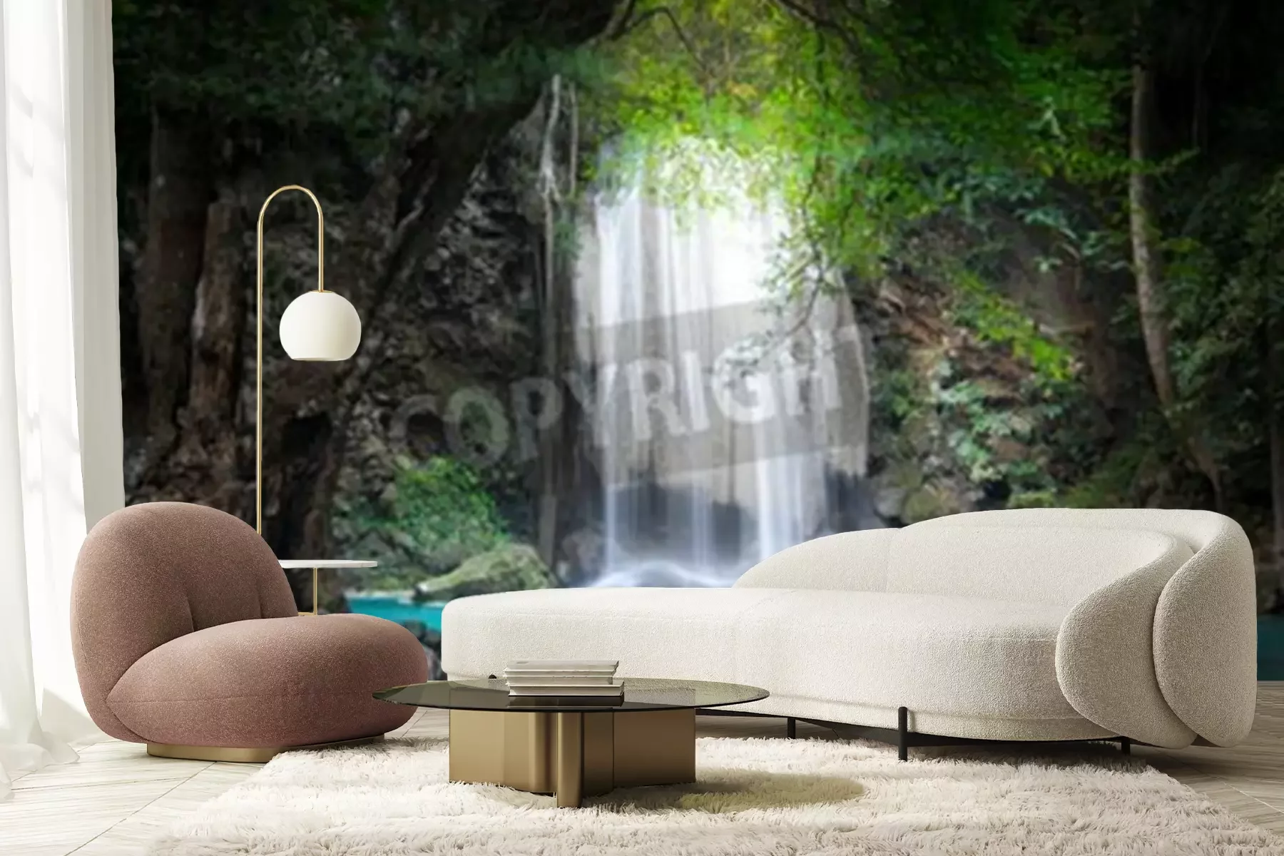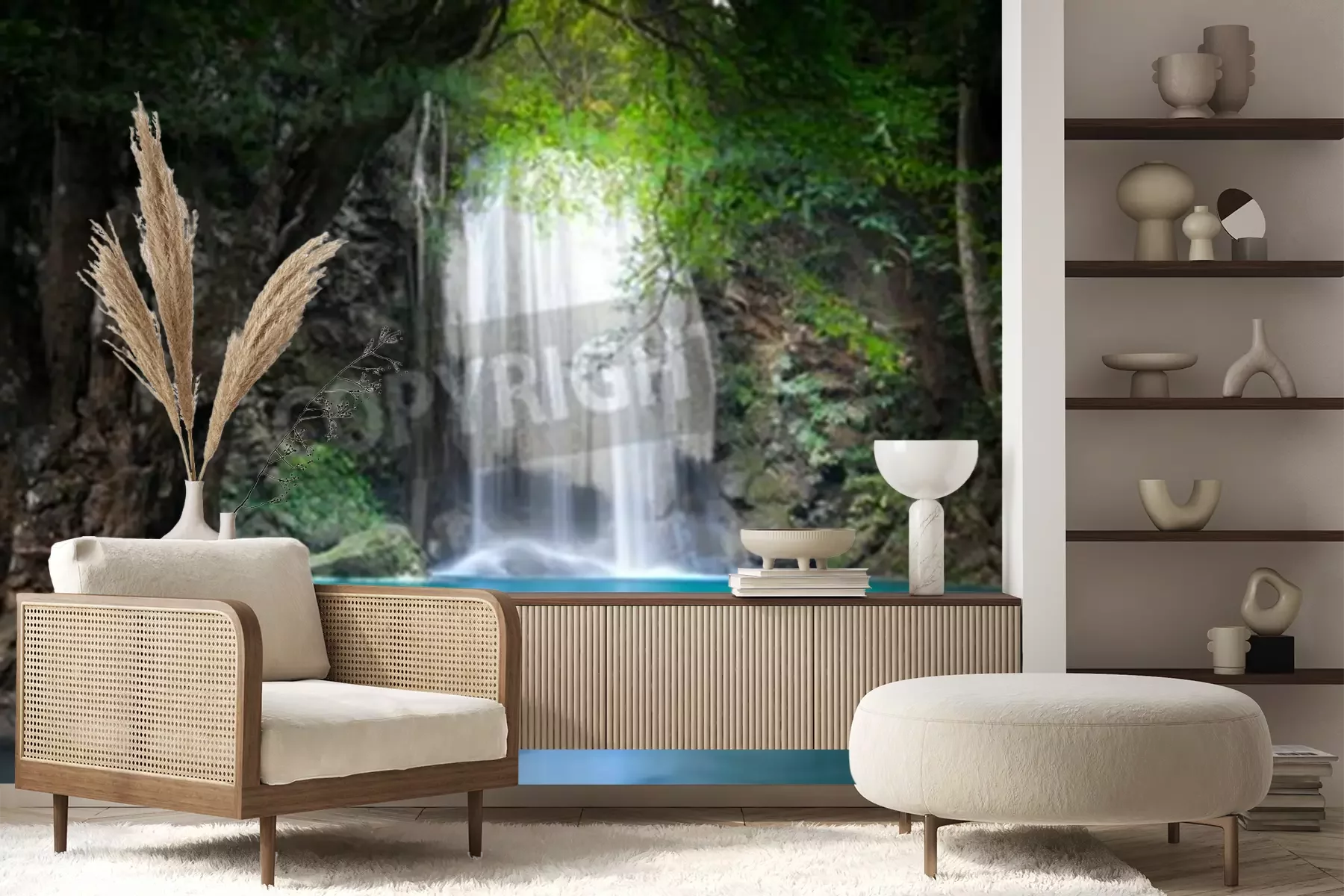 Fototapete Dschungel 3D Wasserfall
