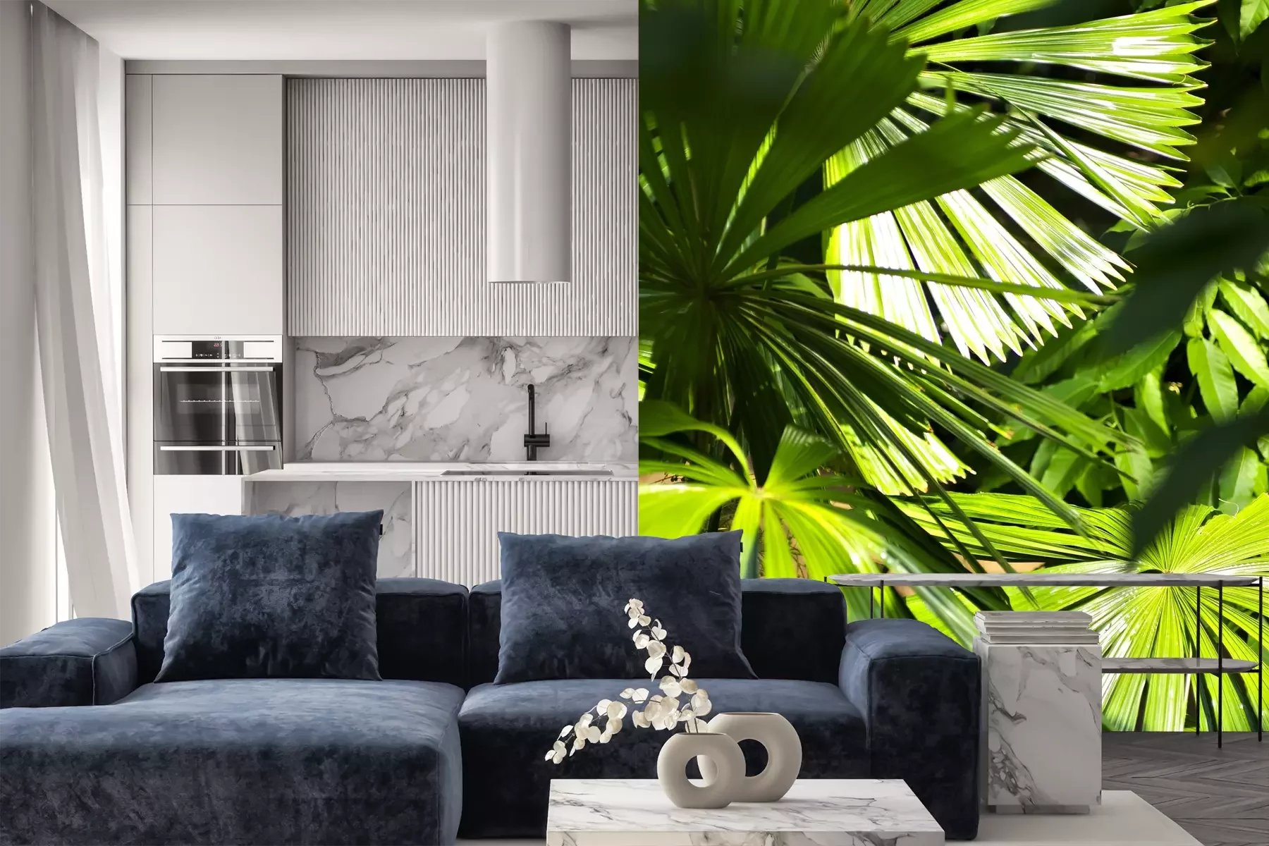 Das Material Premium+ besteht aus einer strukturierten Vinyl-Oberschicht und einem Trägermaterial (Vlies) mit einer Grammatur von 255 g/m², das kleine Unebenheiten der Wand zuverlässig kaschiert. Die feine Sandstruktur verleiht der Oberfläche eine luxuriöse Haptik, während das halbmatte Finish die Tiefe der Farben betont. Das Material ist dampfdurchlässig – so kann diese Fototapete auch in Küchen und Badezimmern eingesetzt werden. Die maximale Breite einer Tapetenbahn beträgt 100 cm. Bei größeren Abmessungen besteht die Fototapete aus mehreren gleich großen Bahnen. Der Kleber wird direkt auf die Wand aufgetragen, und die Fototapete wird auf Stoß angebracht, was für einen ästhetischen Effekt ohne sichtbare Fugen sorgt. Die Oberfläche ist pflegeleicht und kann bei Bedarf sanft mit einem feuchten Tuch abgewischt werden.