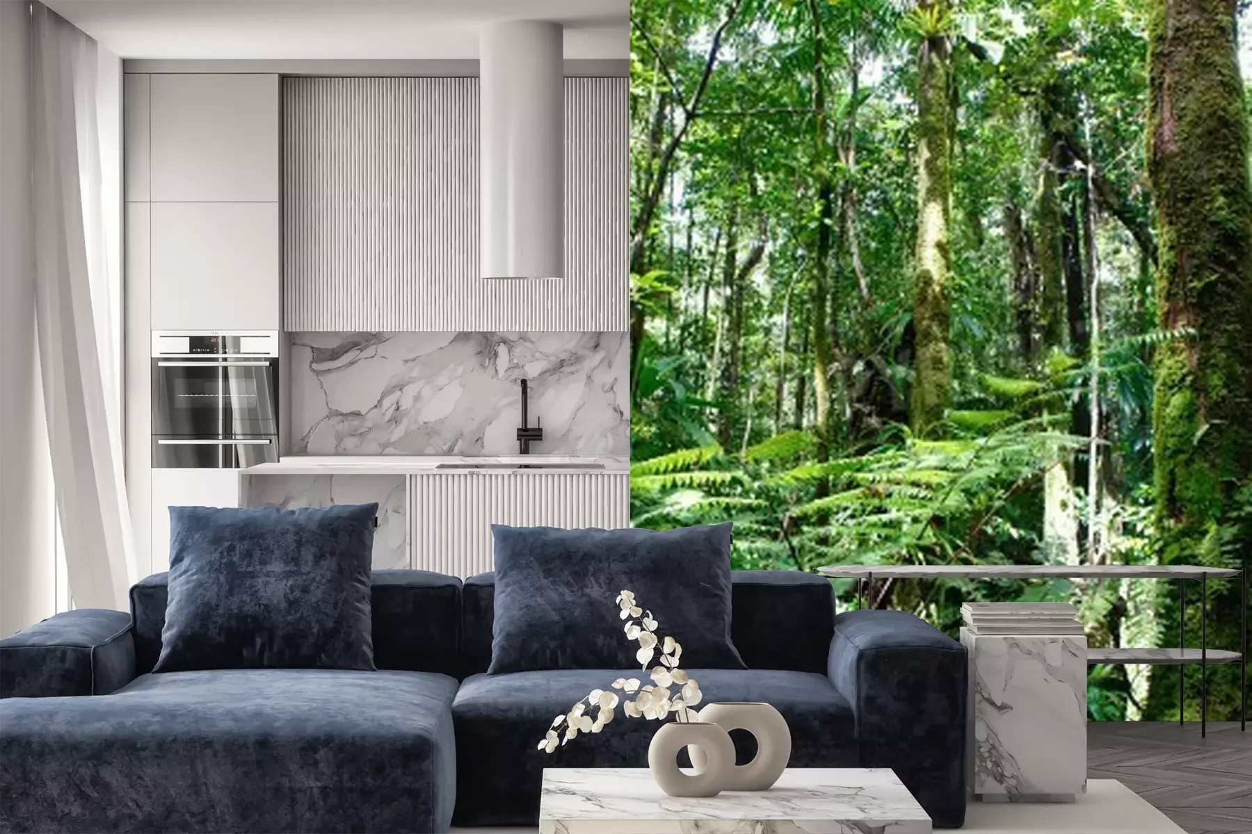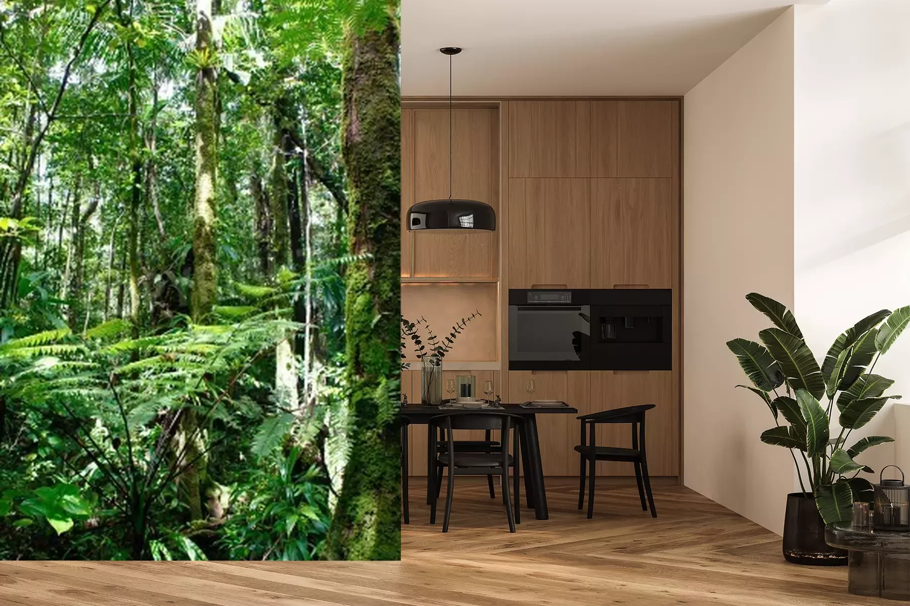 Fototapete Dschungelpflanzen in Sonnenstrahlen