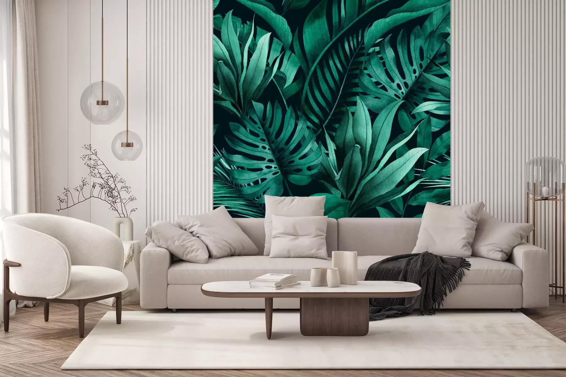 Die Fototapeten werden in Bahnen geliefert. Die Größe und die Anzahl der Bahnen, aus denen die gesamte Fototapete besteht, hängen vom gewählten Material ab. Wenn die Größe die maximale Breite des Materials überschreitet, besteht der Ausdruck aus mehreren gleich großen Bahnen.