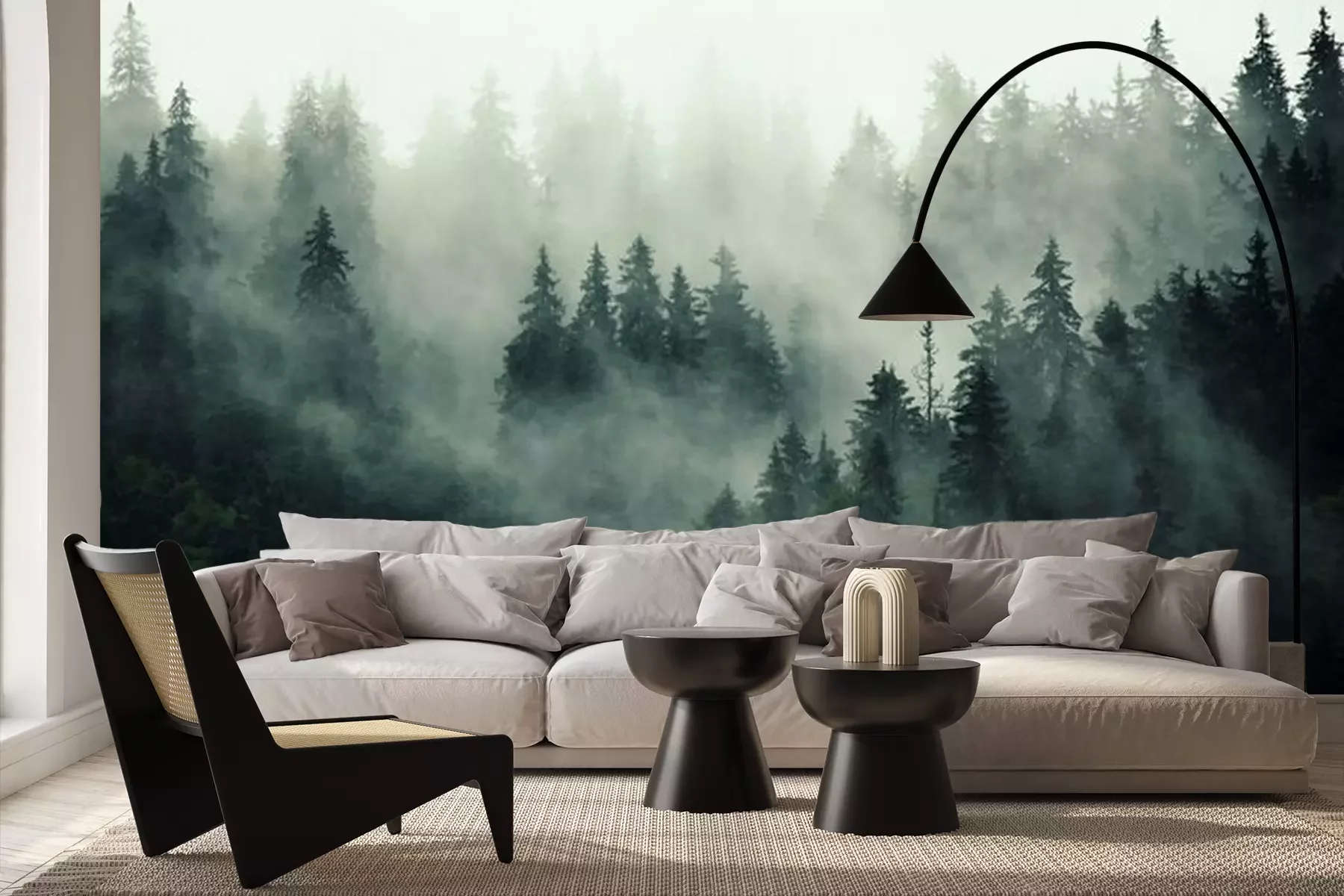 Stahlgrauer wald im nebelFototapete