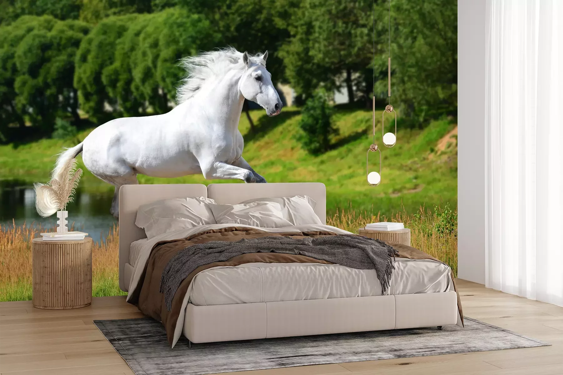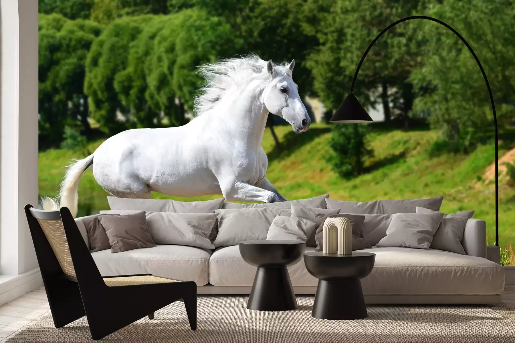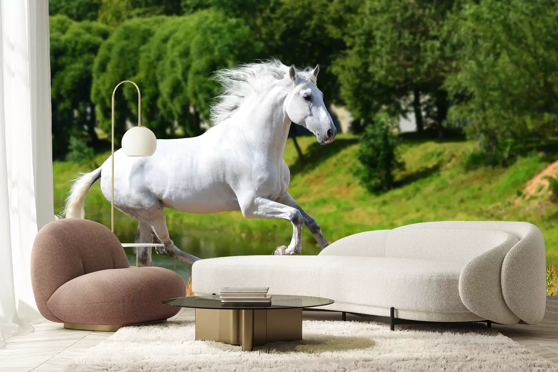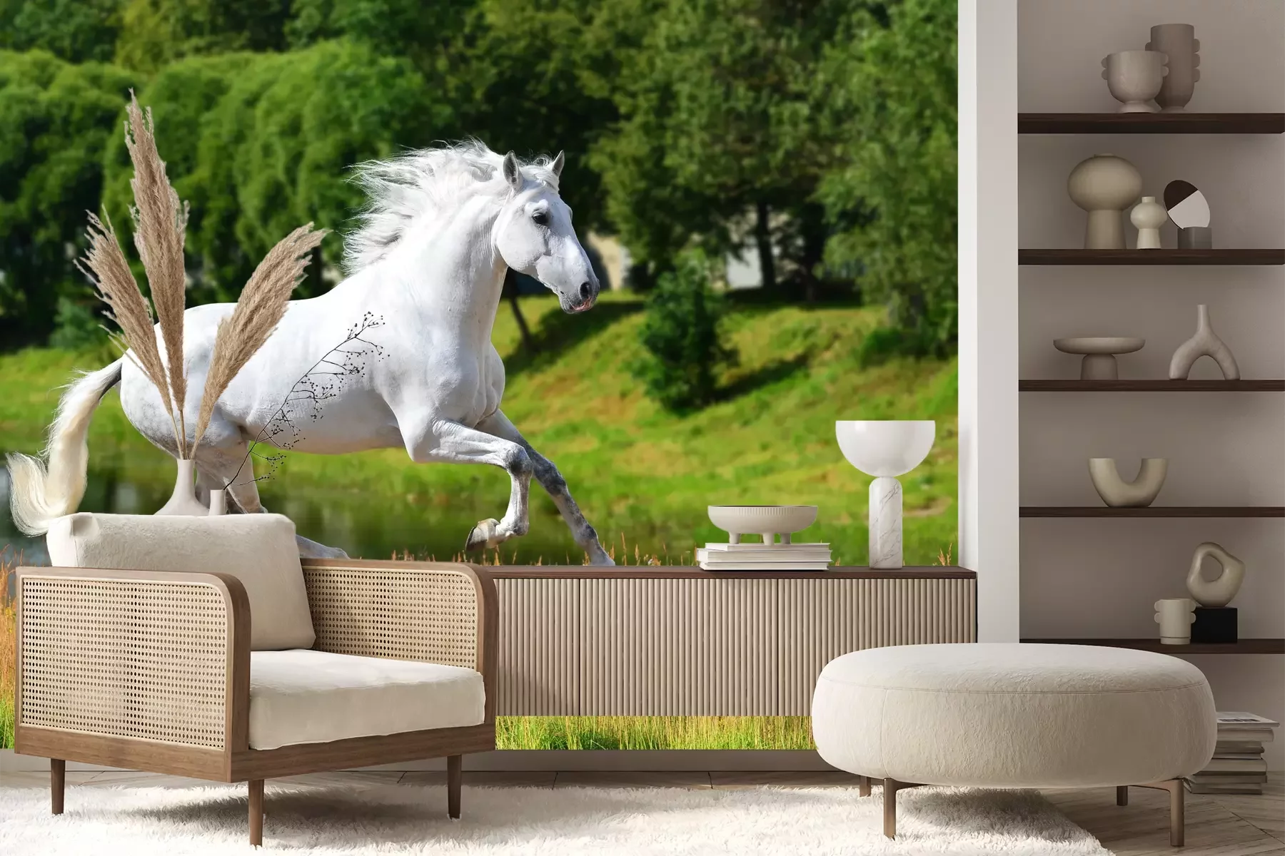 Fototapete Durch eine wiese laufende stute