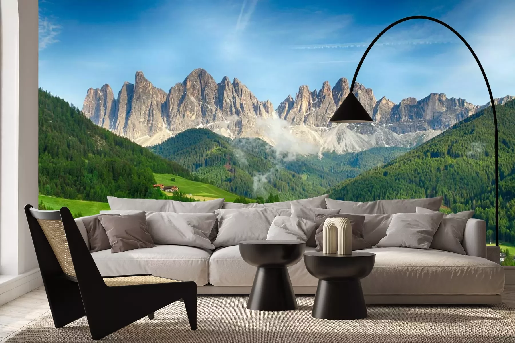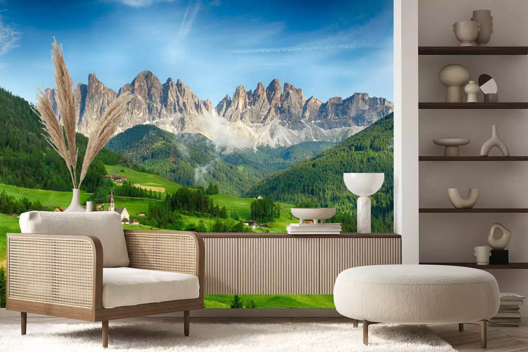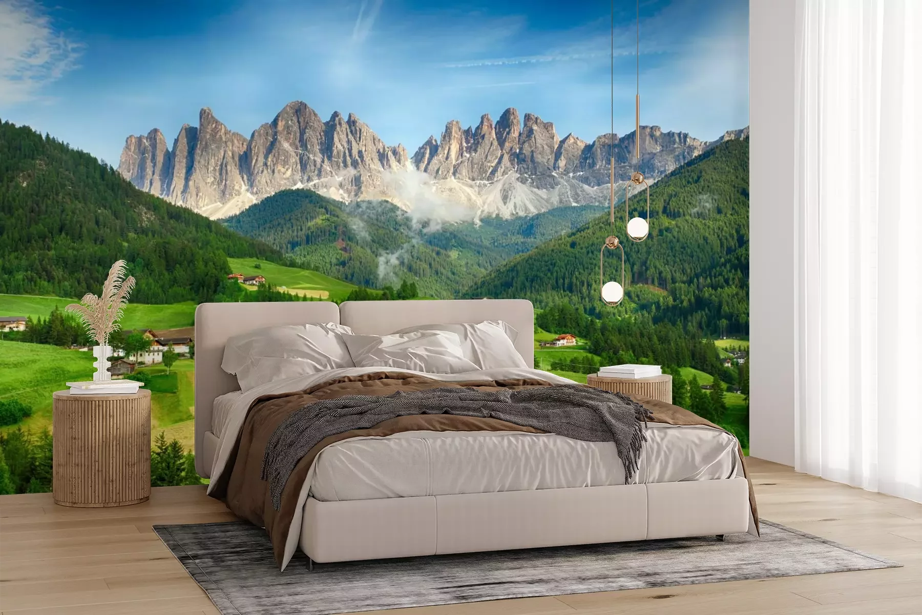 Das Material Premium+ besteht aus einer strukturierten Vinyl-Oberschicht und einem Trägermaterial (Vlies) mit einer Grammatur von 255 g/m², das kleine Unebenheiten der Wand zuverlässig kaschiert. Die feine Sandstruktur verleiht der Oberfläche eine luxuriöse Haptik, während das halbmatte Finish die Tiefe der Farben betont. Das Material ist dampfdurchlässig – so kann diese Fototapete auch in Küchen und Badezimmern eingesetzt werden. Die maximale Breite einer Tapetenbahn beträgt 100 cm. Bei größeren Abmessungen besteht die Fototapete aus mehreren gleich großen Bahnen. Der Kleber wird direkt auf die Wand aufgetragen, und die Fototapete wird auf Stoß angebracht, was für einen ästhetischen Effekt ohne sichtbare Fugen sorgt. Die Oberfläche ist pflegeleicht und kann bei Bedarf sanft mit einem feuchten Tuch abgewischt werden.