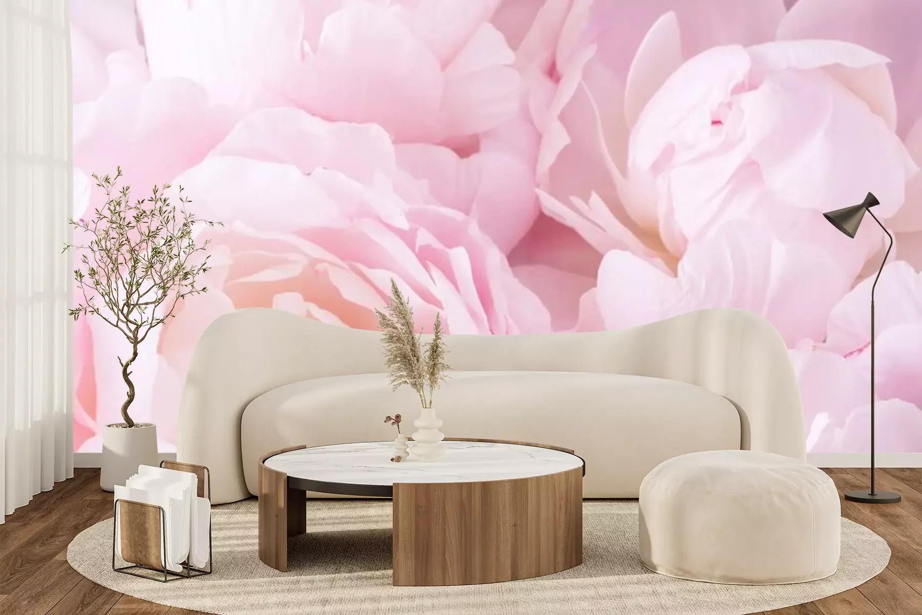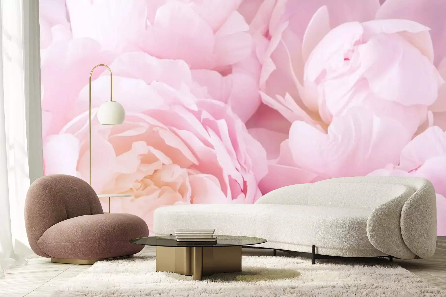 Fototapete Ein Bouquet aus duftenden Pfingstrosen in Pastellrosa