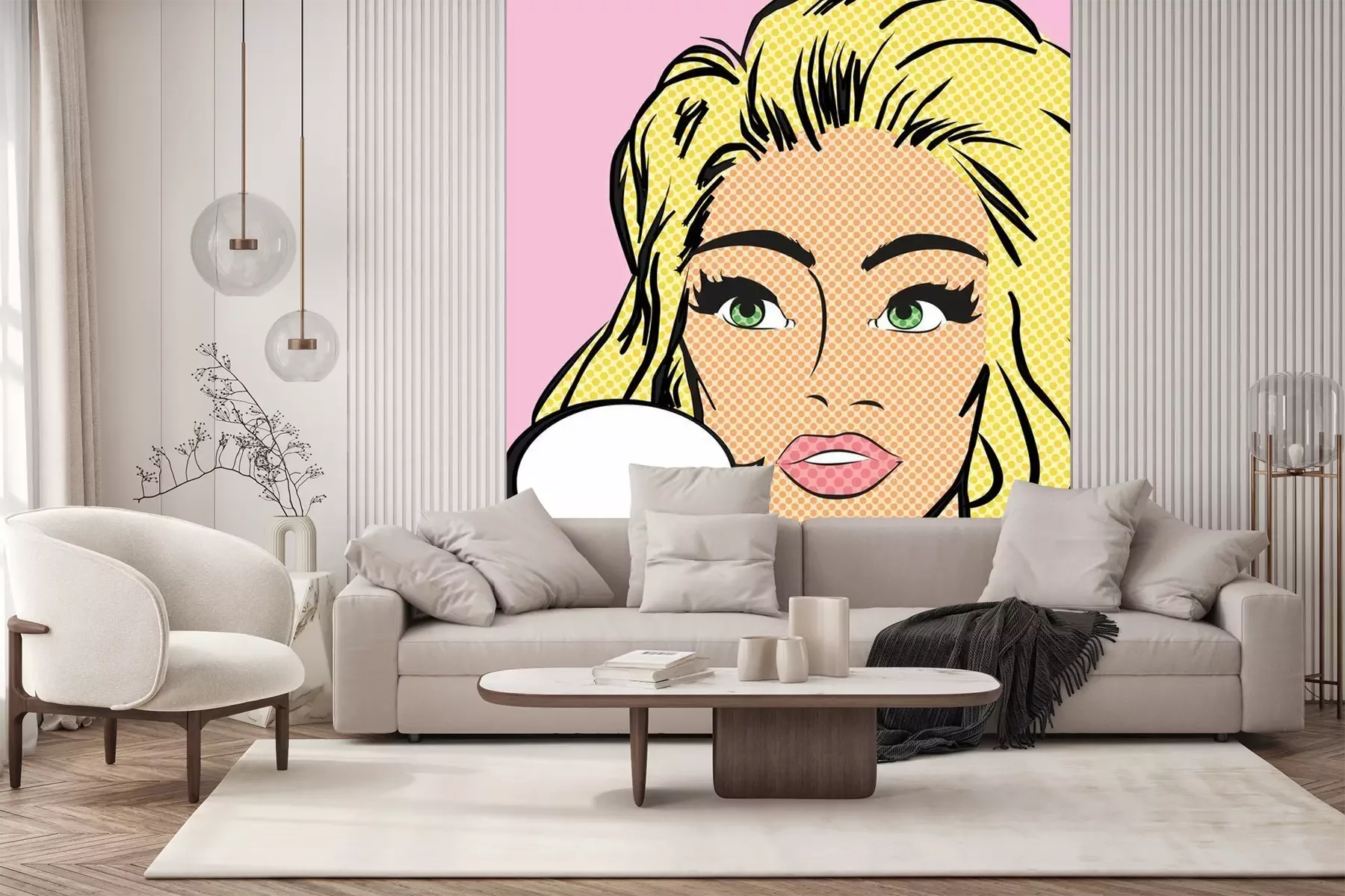 Die Fototapeten werden in Bahnen geliefert. Die Größe und die Anzahl der Bahnen, aus denen die gesamte Fototapete besteht, hängen vom gewählten Material ab. Wenn die Größe die maximale Breite des Materials überschreitet, besteht der Ausdruck aus mehreren gleich großen Bahnen.