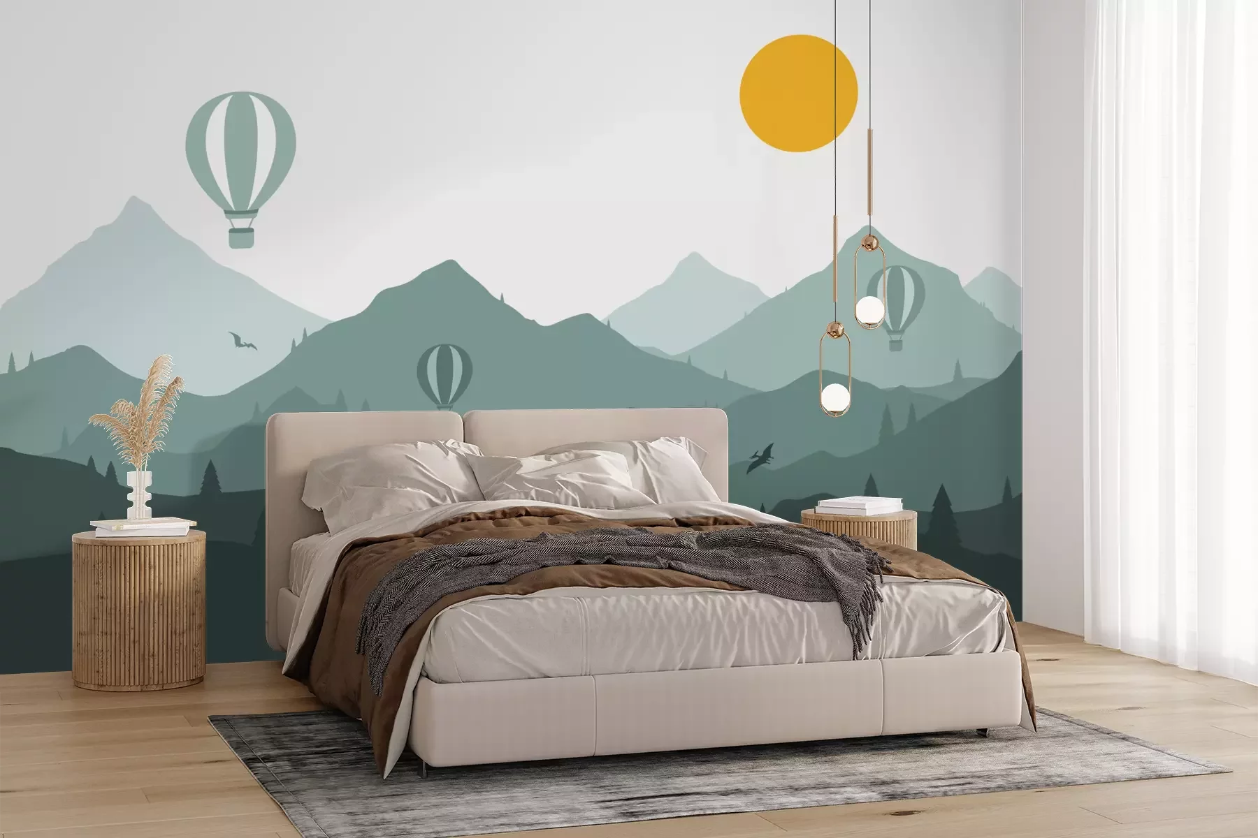 Die Fototapeten werden in Bahnen geliefert. Die Größe und die Anzahl der Bahnen, aus denen die gesamte Fototapete besteht, hängen vom gewählten Material ab. Wenn die Größe die maximale Breite des Materials überschreitet, besteht der Ausdruck aus mehreren gleich großen Bahnen.