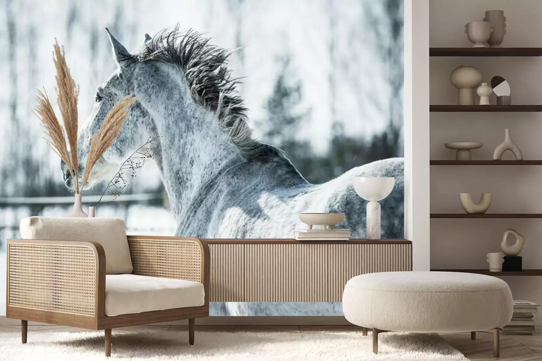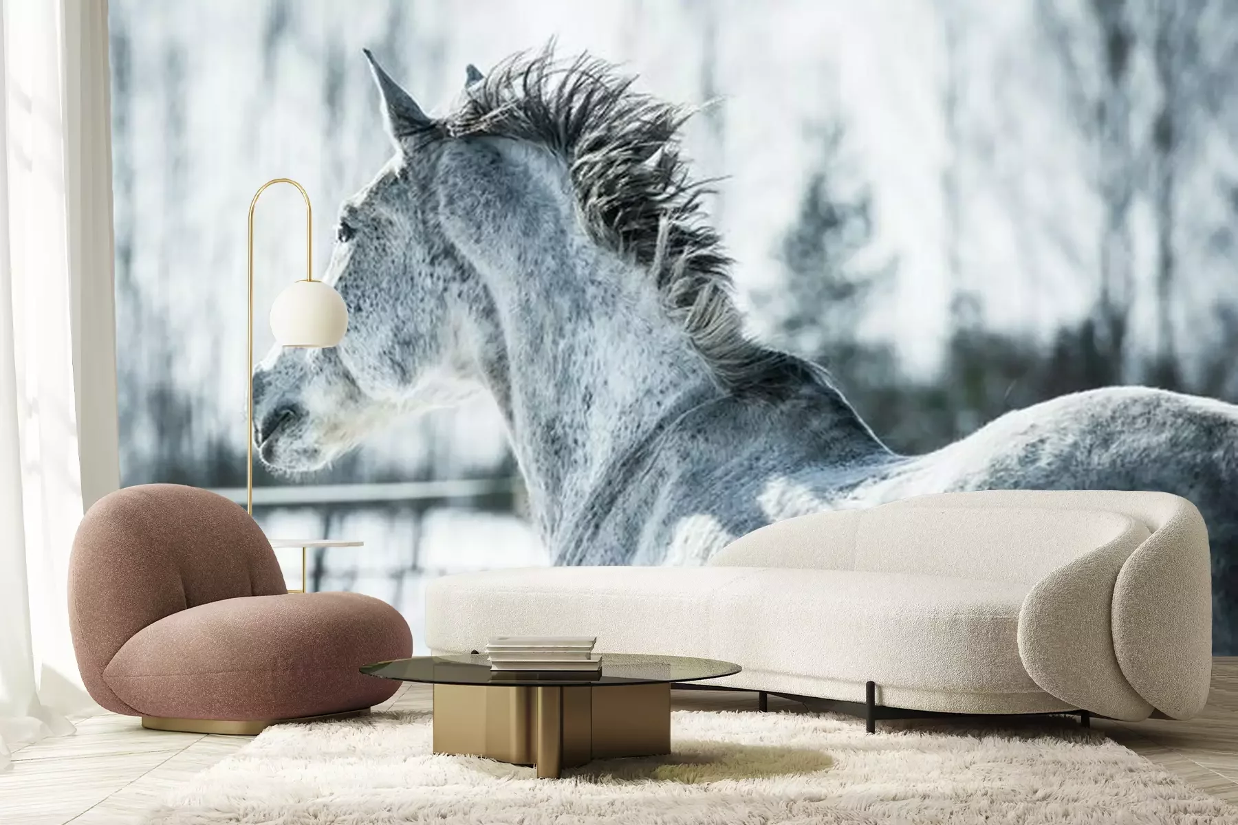 Das Material Premium+ besteht aus einer strukturierten Vinyl-Oberschicht und einem Trägermaterial (Vlies) mit einer Grammatur von 255 g/m², das kleine Unebenheiten der Wand zuverlässig kaschiert. Die feine Sandstruktur verleiht der Oberfläche eine luxuriöse Haptik, während das halbmatte Finish die Tiefe der Farben betont. Das Material ist dampfdurchlässig – so kann diese Fototapete auch in Küchen und Badezimmern eingesetzt werden. Die maximale Breite einer Tapetenbahn beträgt 100 cm. Bei größeren Abmessungen besteht die Fototapete aus mehreren gleich großen Bahnen. Der Kleber wird direkt auf die Wand aufgetragen, und die Fototapete wird auf Stoß angebracht, was für einen ästhetischen Effekt ohne sichtbare Fugen sorgt. Die Oberfläche ist pflegeleicht und kann bei Bedarf sanft mit einem feuchten Tuch abgewischt werden.