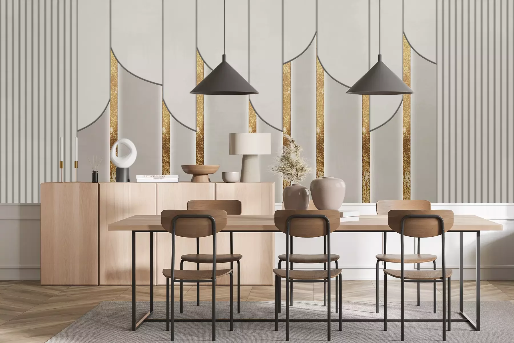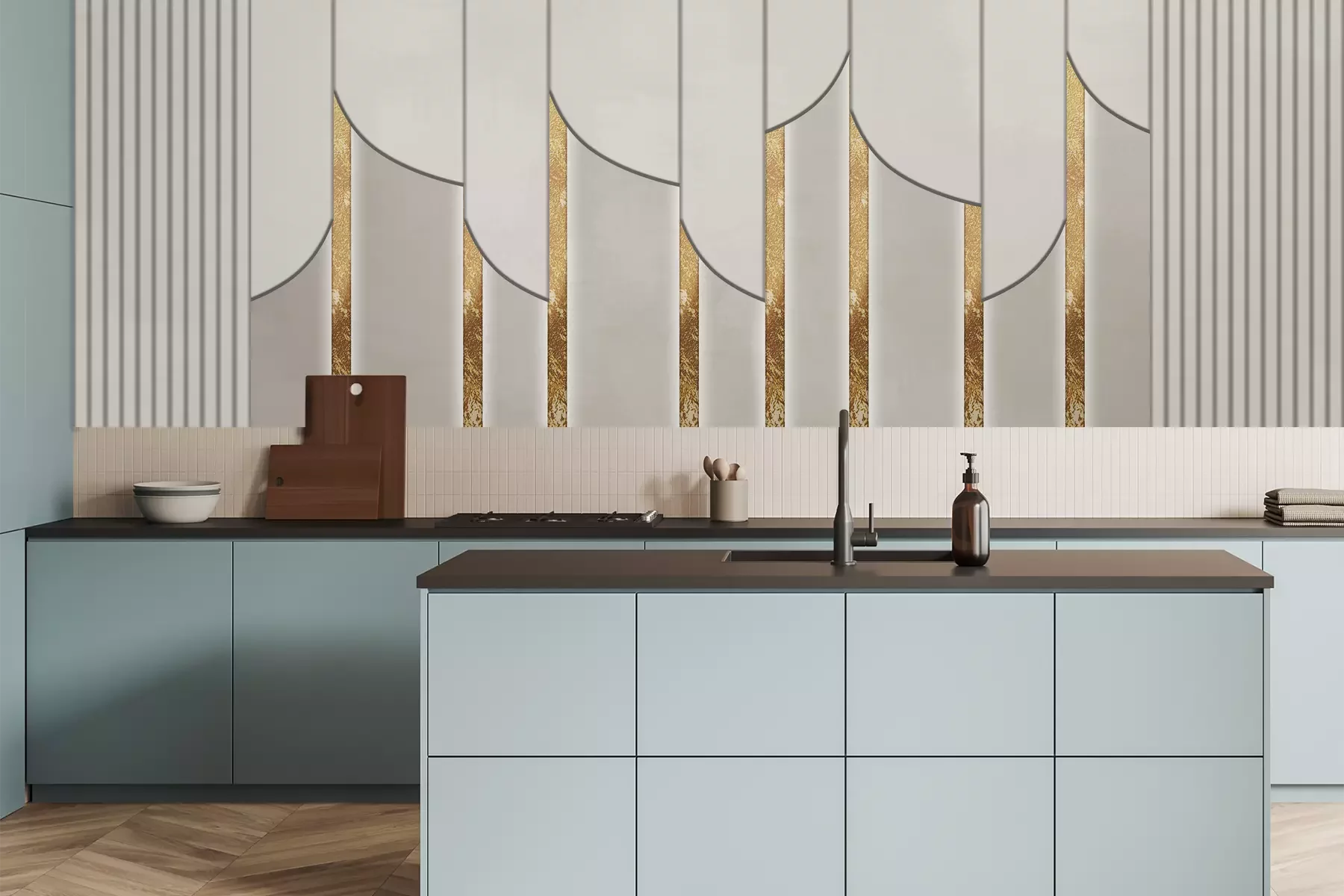 Ein geometrisches 3d-muster mit goldenen elementen