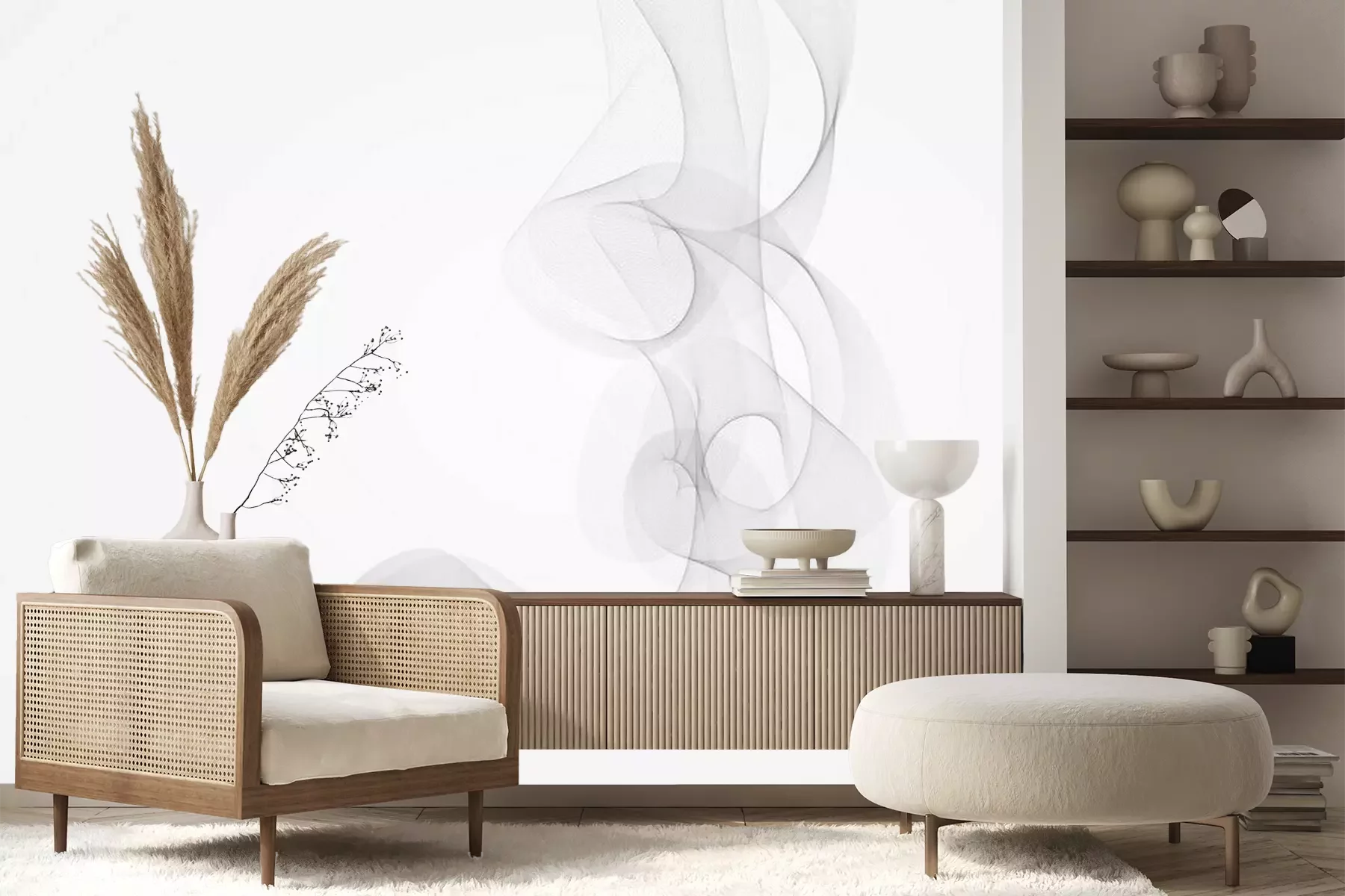 Das Material Premium+ besteht aus einer strukturierten Vinyl-Oberschicht und einem Trägermaterial (Vlies) mit einer Grammatur von 255 g/m², das kleine Unebenheiten der Wand zuverlässig kaschiert. Die feine Sandstruktur verleiht der Oberfläche eine luxuriöse Haptik, während das halbmatte Finish die Tiefe der Farben betont. Das Material ist dampfdurchlässig – so kann diese Fototapete auch in Küchen und Badezimmern eingesetzt werden. Die maximale Breite einer Tapetenbahn beträgt 100 cm. Bei größeren Abmessungen besteht die Fototapete aus mehreren gleich großen Bahnen. Der Kleber wird direkt auf die Wand aufgetragen, und die Fototapete wird auf Stoß angebracht, was für einen ästhetischen Effekt ohne sichtbare Fugen sorgt. Die Oberfläche ist pflegeleicht und kann bei Bedarf sanft mit einem feuchten Tuch abgewischt werden.