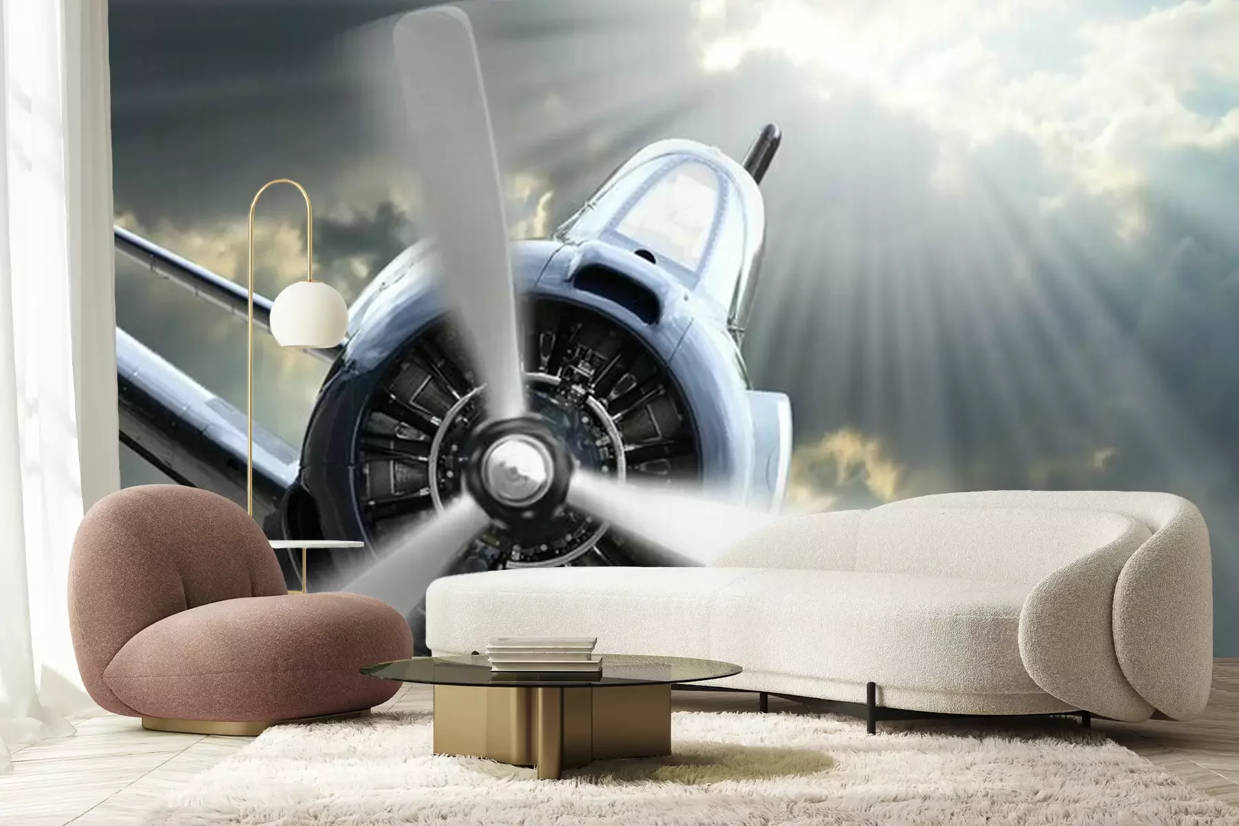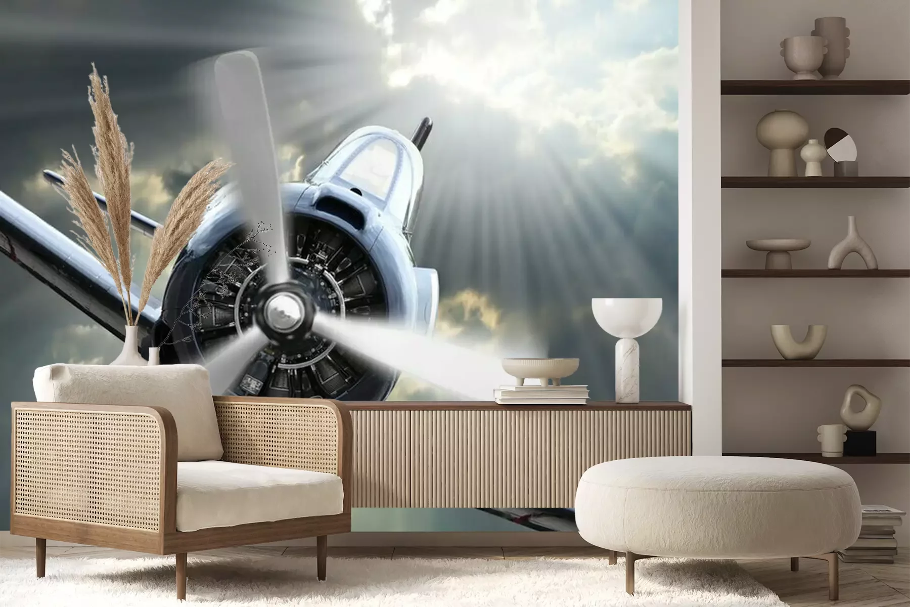 Retro Flugzeuge in Bewegung am HimmelFototapete
