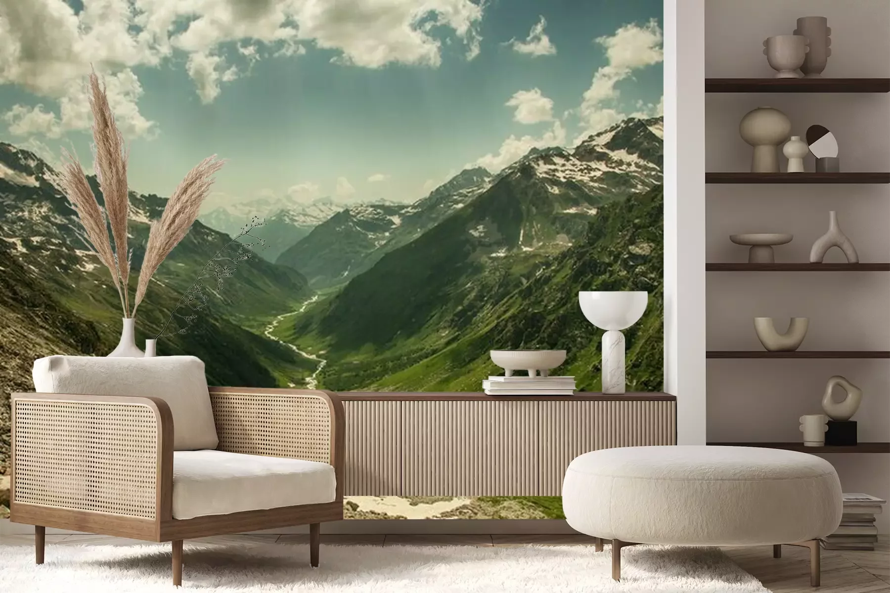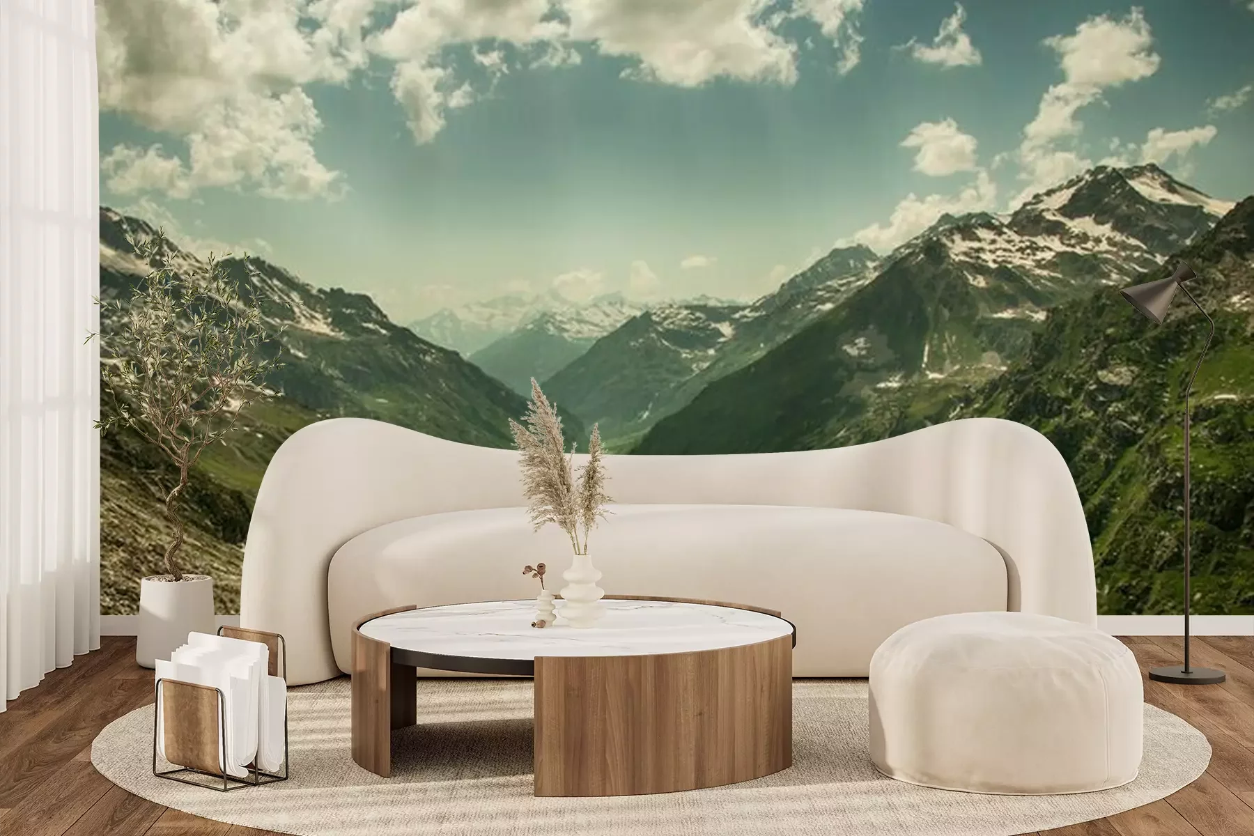 Das Material Premium+ besteht aus einer strukturierten Vinyl-Oberschicht und einem Trägermaterial (Vlies) mit einer Grammatur von 255 g/m², das kleine Unebenheiten der Wand zuverlässig kaschiert. Die feine Sandstruktur verleiht der Oberfläche eine luxuriöse Haptik, während das halbmatte Finish die Tiefe der Farben betont. Das Material ist dampfdurchlässig – so kann diese Fototapete auch in Küchen und Badezimmern eingesetzt werden. Die maximale Breite einer Tapetenbahn beträgt 100 cm. Bei größeren Abmessungen besteht die Fototapete aus mehreren gleich großen Bahnen. Der Kleber wird direkt auf die Wand aufgetragen, und die Fototapete wird auf Stoß angebracht, was für einen ästhetischen Effekt ohne sichtbare Fugen sorgt. Die Oberfläche ist pflegeleicht und kann bei Bedarf sanft mit einem feuchten Tuch abgewischt werden.