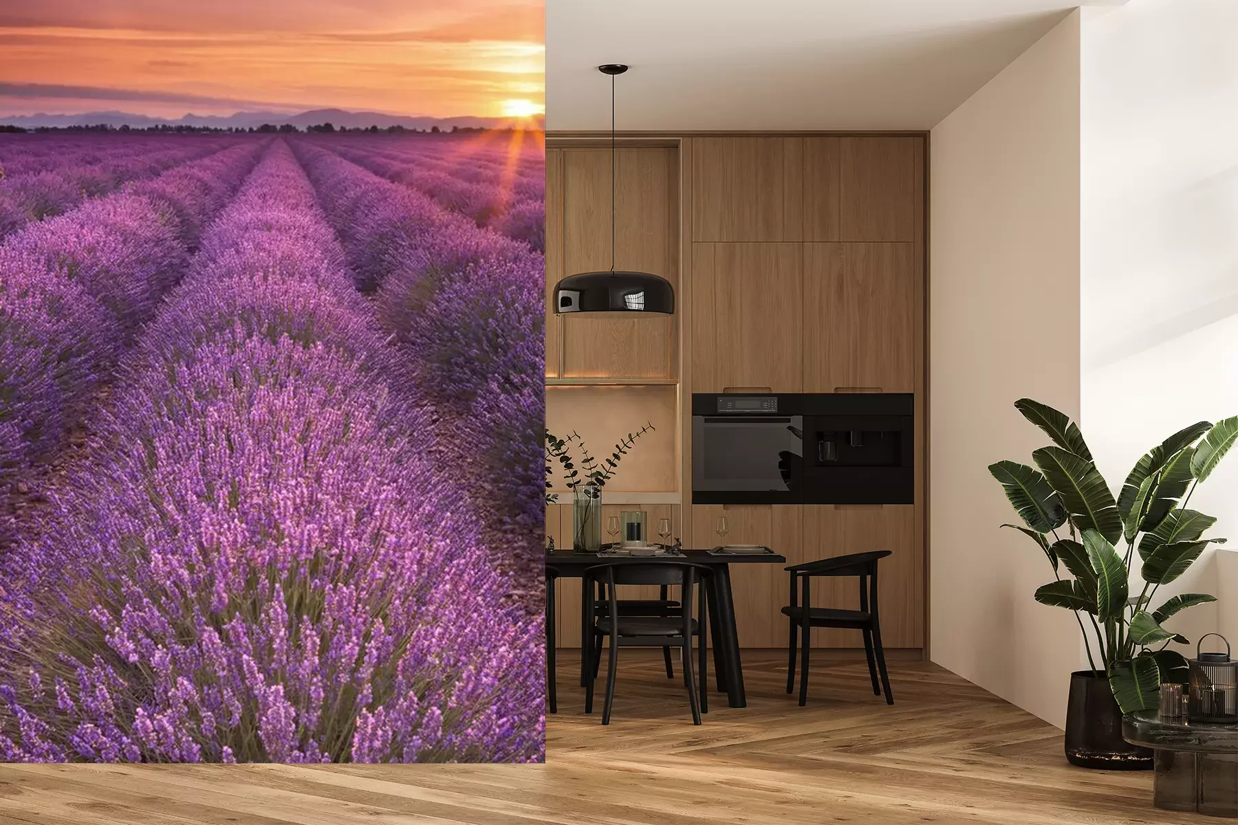 Das Material Premium+ besteht aus einer strukturierten Vinyl-Oberschicht und einem Trägermaterial (Vlies) mit einer Grammatur von 255 g/m², das kleine Unebenheiten der Wand zuverlässig kaschiert. Die feine Sandstruktur verleiht der Oberfläche eine luxuriöse Haptik, während das halbmatte Finish die Tiefe der Farben betont. Das Material ist dampfdurchlässig – so kann diese Fototapete auch in Küchen und Badezimmern eingesetzt werden. Die maximale Breite einer Tapetenbahn beträgt 100 cm. Bei größeren Abmessungen besteht die Fototapete aus mehreren gleich großen Bahnen. Der Kleber wird direkt auf die Wand aufgetragen, und die Fototapete wird auf Stoß angebracht, was für einen ästhetischen Effekt ohne sichtbare Fugen sorgt. Die Oberfläche ist pflegeleicht und kann bei Bedarf sanft mit einem feuchten Tuch abgewischt werden.