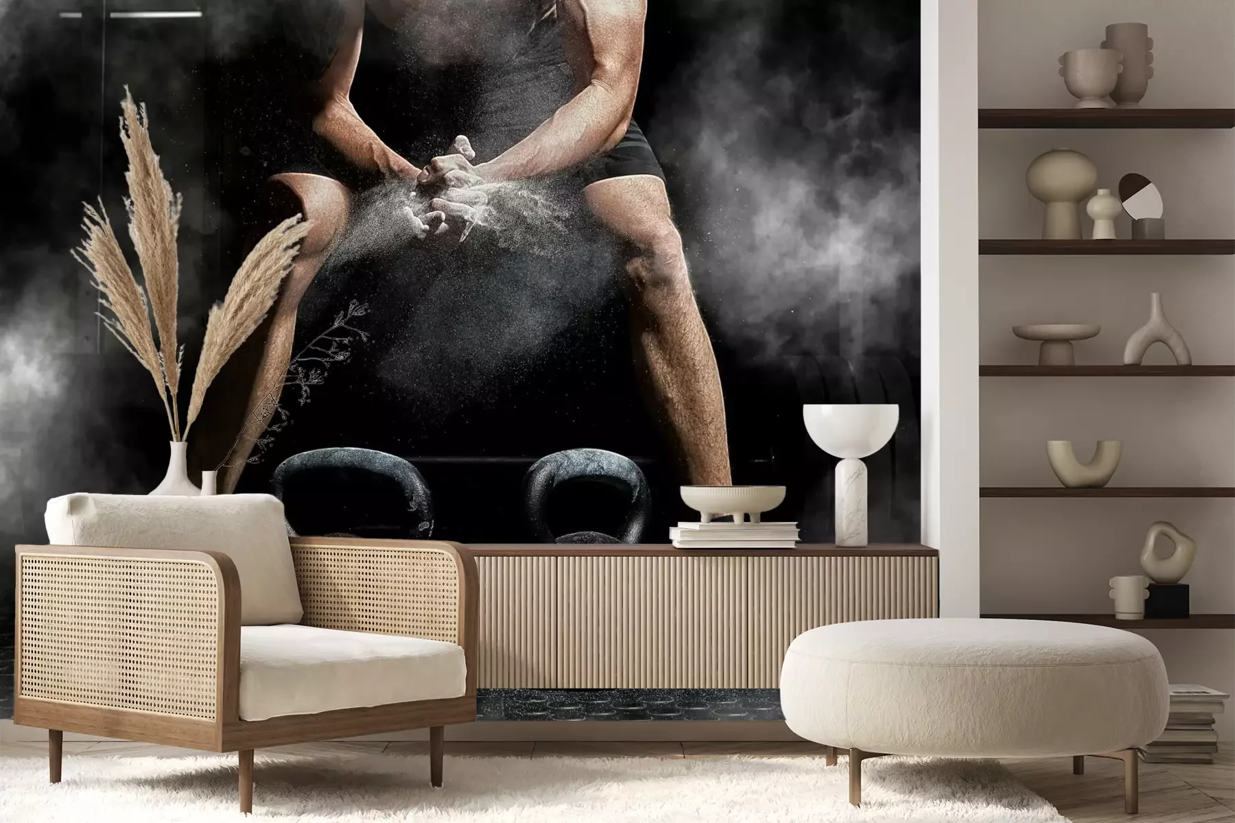 Das Material Premium+ besteht aus einer strukturierten Vinyl-Oberschicht und einem Trägermaterial (Vlies) mit einer Grammatur von 255 g/m², das kleine Unebenheiten der Wand zuverlässig kaschiert. Die feine Sandstruktur verleiht der Oberfläche eine luxuriöse Haptik, während das halbmatte Finish die Tiefe der Farben betont. Das Material ist dampfdurchlässig – so kann diese Fototapete auch in Küchen und Badezimmern eingesetzt werden. Die maximale Breite einer Tapetenbahn beträgt 100 cm. Bei größeren Abmessungen besteht die Fototapete aus mehreren gleich großen Bahnen. Der Kleber wird direkt auf die Wand aufgetragen, und die Fototapete wird auf Stoß angebracht, was für einen ästhetischen Effekt ohne sichtbare Fugen sorgt. Die Oberfläche ist pflegeleicht und kann bei Bedarf sanft mit einem feuchten Tuch abgewischt werden.