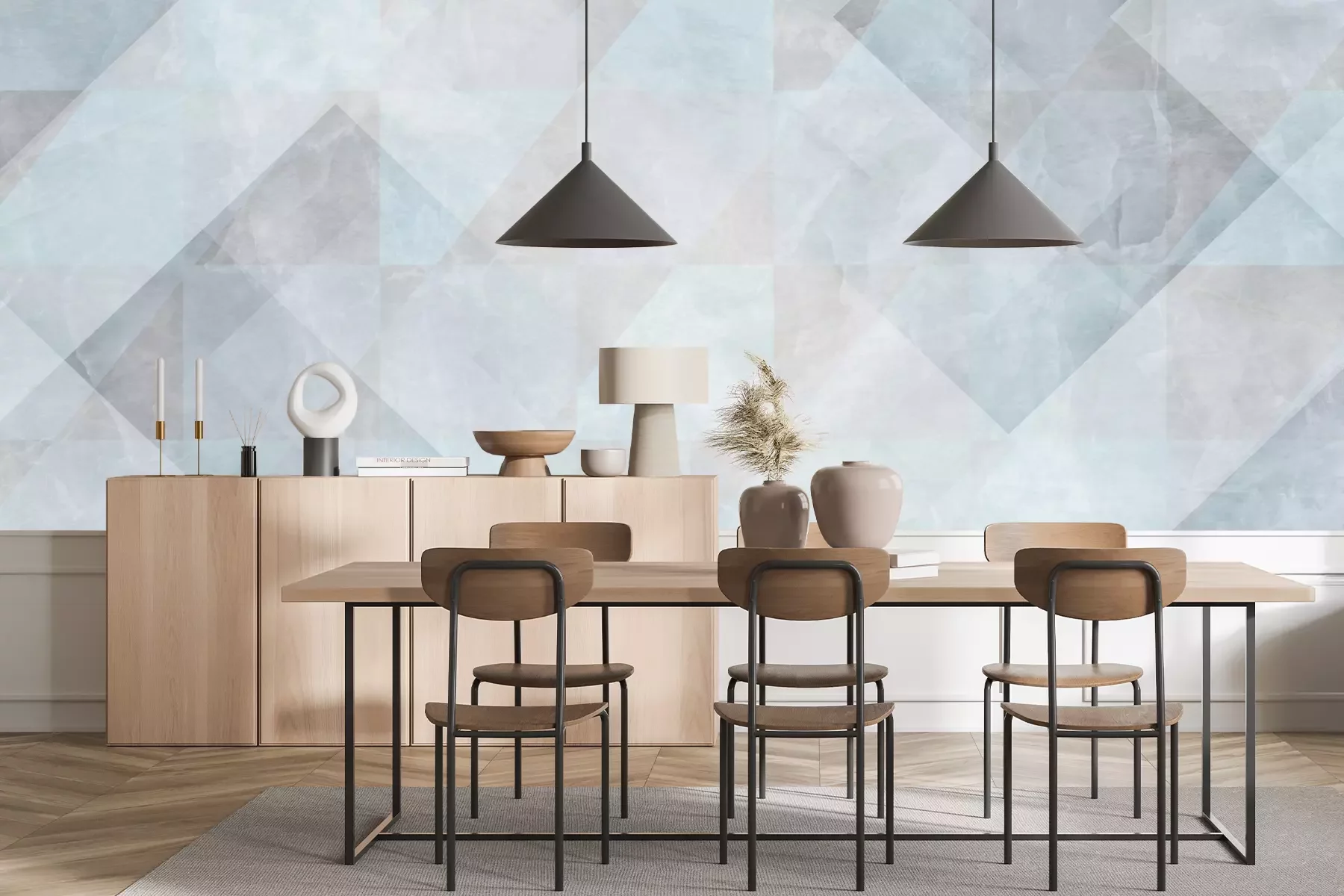 Das Material Premium+ besteht aus einer strukturierten Vinyl-Oberschicht und einem Trägermaterial (Vlies) mit einer Grammatur von 255 g/m², das kleine Unebenheiten der Wand zuverlässig kaschiert. Die feine Sandstruktur verleiht der Oberfläche eine luxuriöse Haptik, während das halbmatte Finish die Tiefe der Farben betont. Das Material ist dampfdurchlässig – so kann diese Fototapete auch in Küchen und Badezimmern eingesetzt werden. Die maximale Breite einer Tapetenbahn beträgt 100 cm. Bei größeren Abmessungen besteht die Fototapete aus mehreren gleich großen Bahnen. Der Kleber wird direkt auf die Wand aufgetragen, und die Fototapete wird auf Stoß angebracht, was für einen ästhetischen Effekt ohne sichtbare Fugen sorgt. Die Oberfläche ist pflegeleicht und kann bei Bedarf sanft mit einem feuchten Tuch abgewischt werden.