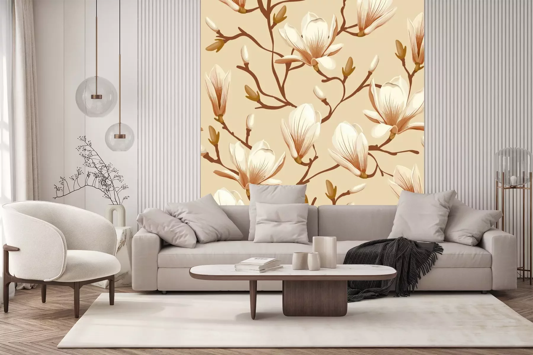 Das Material Standard ist ein hochwertiges Latexmaterial mit einer glatten, matten Oberfläche. Durch den Einsatz von HP-Latex-Drucktechnologie sind die Farben satt, langlebig und UV-beständig. So bleibt das Muster über Jahre hinweg makellos schön. Die verschmutzte Oberfläche dieses Materials kann sanft mit einem trockenen Tuch abgewischt werden. Die maximale Breite einer einzelnen Bahn beträgt 95 cm oder 105 cm – je nach Breite der bestellten Fototapete. Bei Fototapeten mit größeren Abmessungen besteht der Ausdruck aus mehreren gleich großen Tapetenbahnen. Die Fototapete wird auf Stoß angebracht, wodurch die Fugen nahezu unsichtbar sind.
