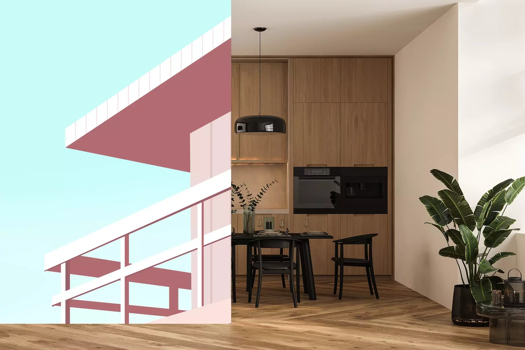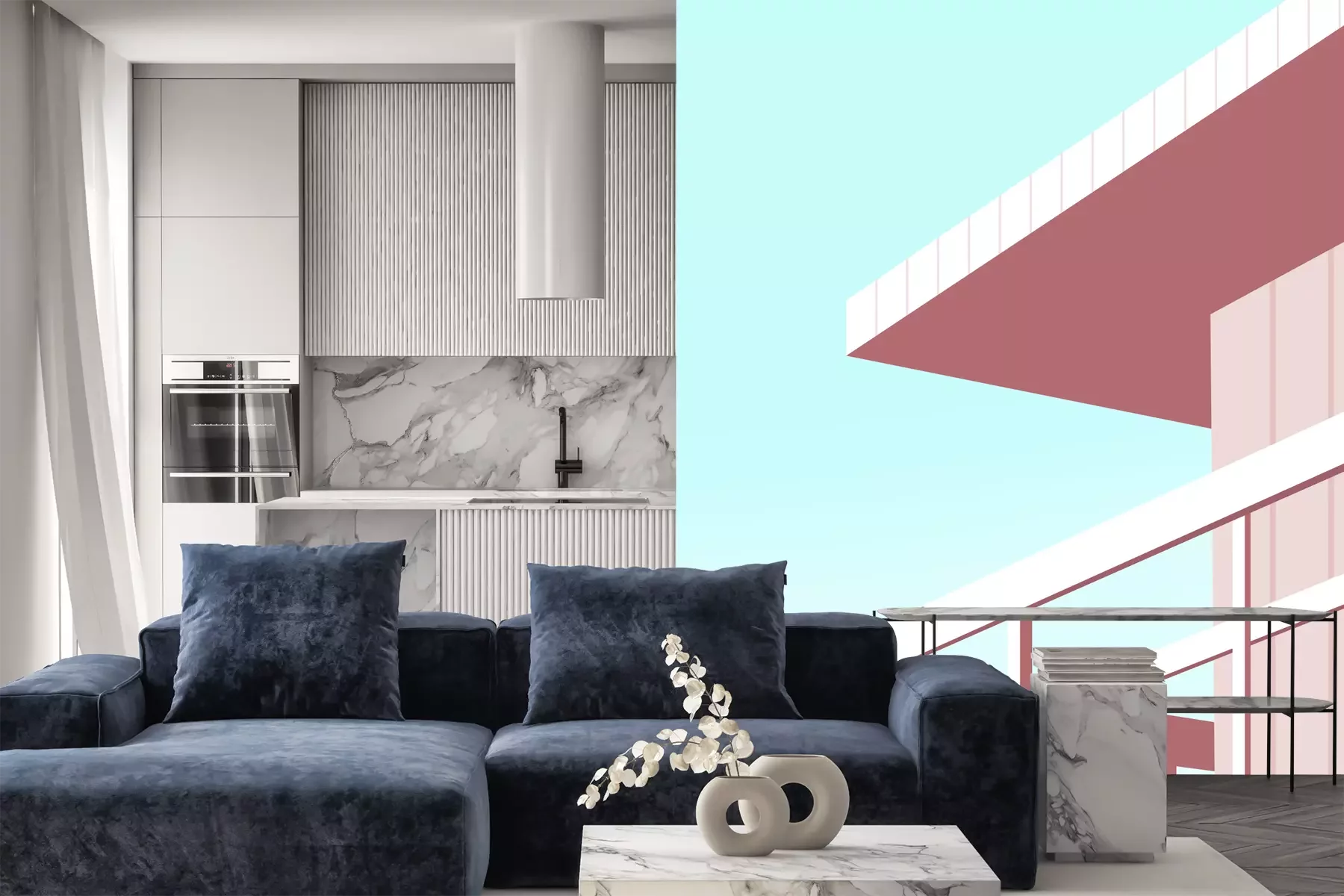 Das Material Premium+ besteht aus einer strukturierten Vinyl-Oberschicht und einem Trägermaterial (Vlies) mit einer Grammatur von 255 g/m², das kleine Unebenheiten der Wand zuverlässig kaschiert. Die feine Sandstruktur verleiht der Oberfläche eine luxuriöse Haptik, während das halbmatte Finish die Tiefe der Farben betont. Das Material ist dampfdurchlässig – so kann diese Fototapete auch in Küchen und Badezimmern eingesetzt werden. Die maximale Breite einer Tapetenbahn beträgt 100 cm. Bei größeren Abmessungen besteht die Fototapete aus mehreren gleich großen Bahnen. Der Kleber wird direkt auf die Wand aufgetragen, und die Fototapete wird auf Stoß angebracht, was für einen ästhetischen Effekt ohne sichtbare Fugen sorgt. Die Oberfläche ist pflegeleicht und kann bei Bedarf sanft mit einem feuchten Tuch abgewischt werden.