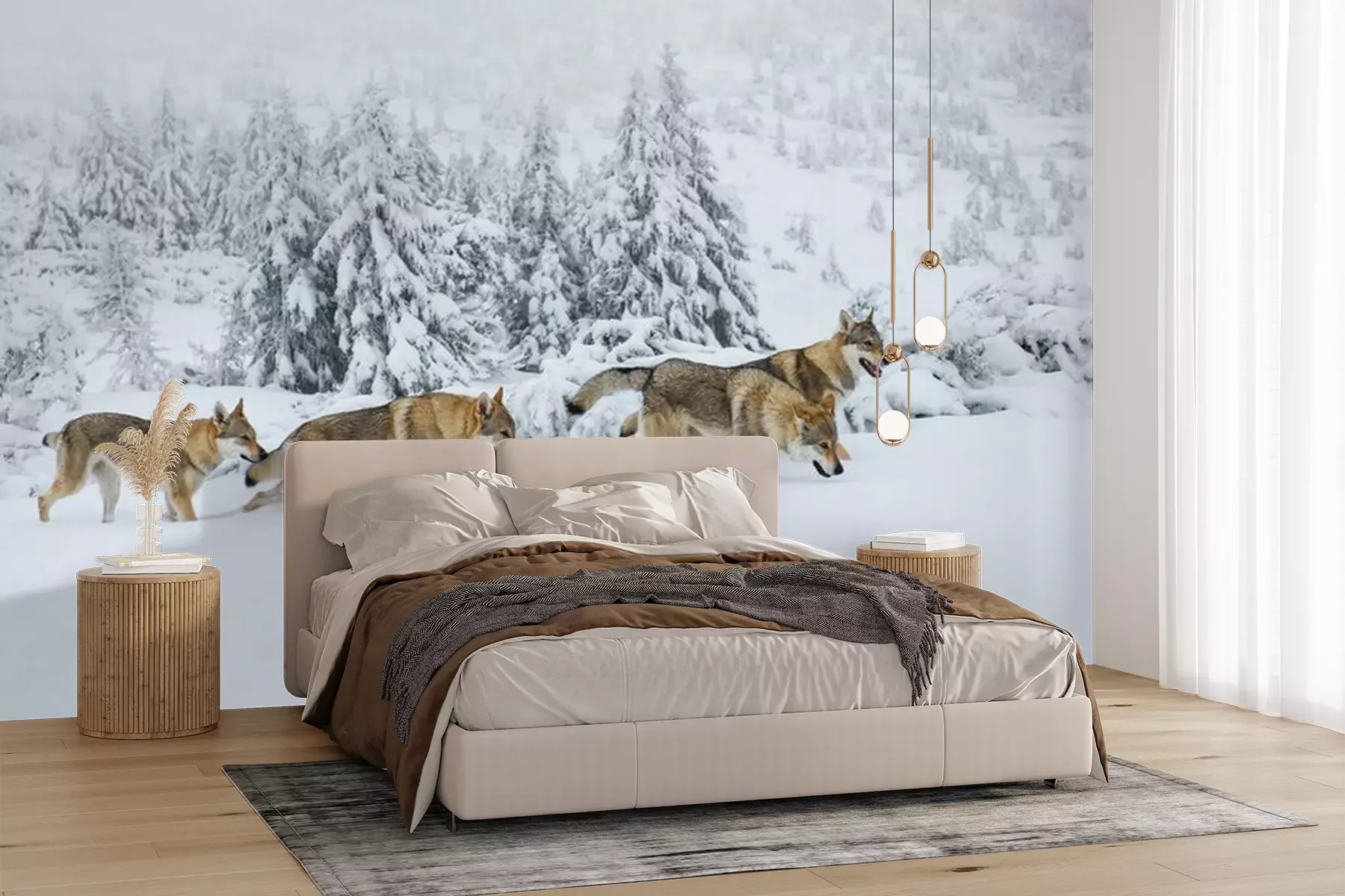 Die Fototapeten werden in Bahnen geliefert. Die Größe und die Anzahl der Bahnen, aus denen die gesamte Fototapete besteht, hängen vom gewählten Material ab. Wenn die Größe die maximale Breite des Materials überschreitet, besteht der Ausdruck aus mehreren gleich großen Bahnen.